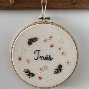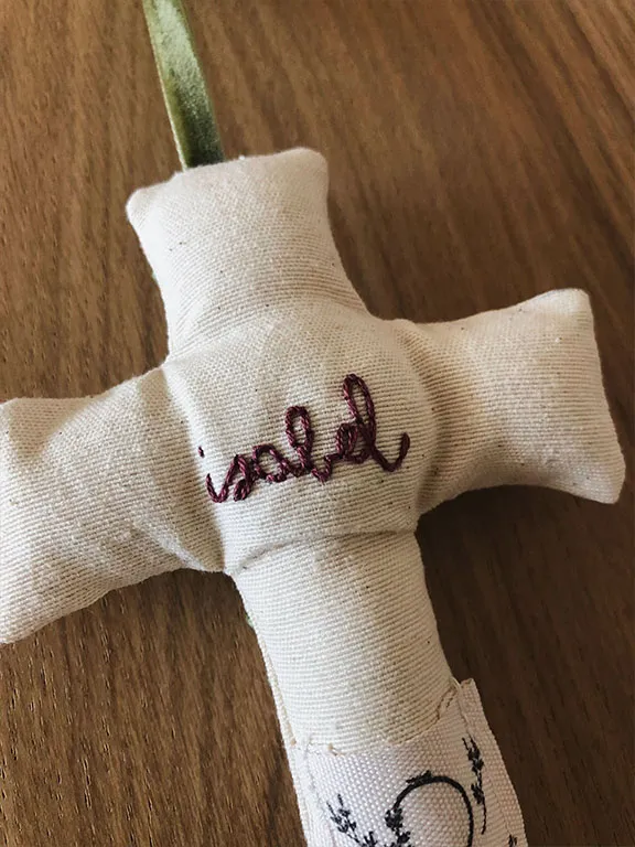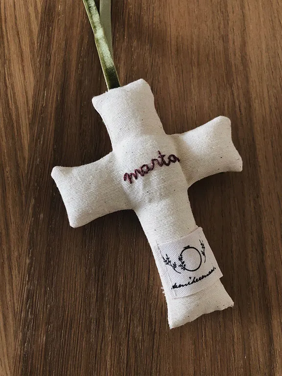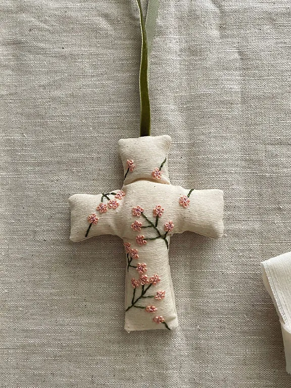 Cruz bordada con florecitas. Ideal para poner en la cunita del bebé, el moisés y la camita de los niños. Un detalle precioso para regalar a los más pequeños de la casa.