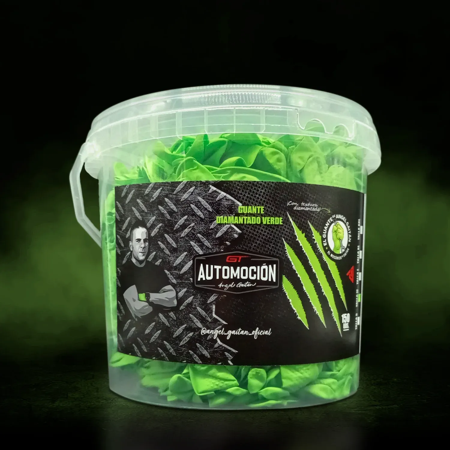 Guantes de Nitrilo Diamantados de color verde. Utilizados y testados por Ángel Gaitán en su día a día. Gracias a su resistencia y agarre, estos guantes son ideales para utilizar en talleres, fábricas e industria, tareas domésticas, hostelería, etc. Se les puede dar una segunda vida ya que son reutilizables.