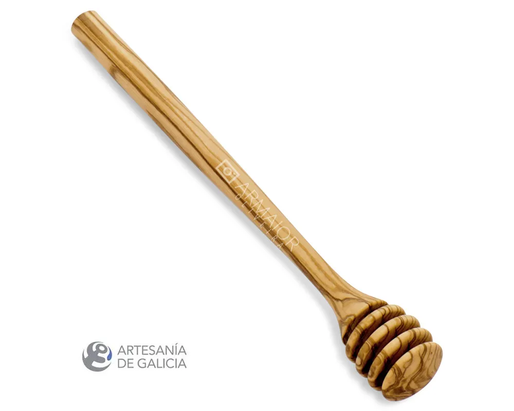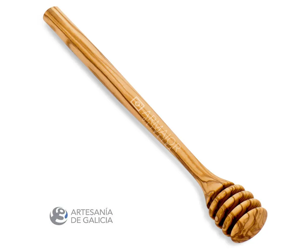 Cuchara de miel hecha a mano en madera de olivo. Cuchara grande de miel con sus ranuras donde la miel se hace una bola y no gotea mientras le das vueltas al mango evitando las salpicaduras. Cuando dejes de girar el mango la miel caerá en forma de hilo fino y así podrás dosificar mejor la cantidad que echas.