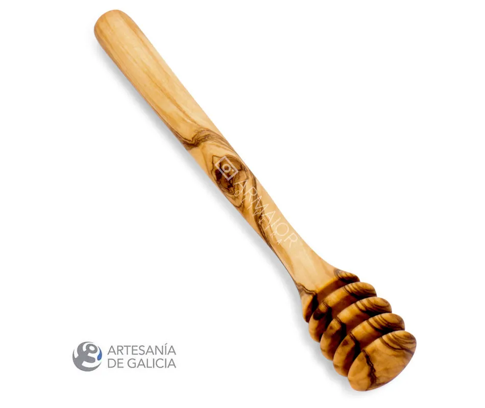 Cuchara de miel hecha a mano en madera de olivo. Cuchara pequeña de miel con sus ranuras donde la miel se hace una bola y no gotea mientras le das vueltas al mango evitando las salpicaduras. Cuando dejes de girar el mango la miel caerá en forma de hilo fino y así podrás dosificar mejor la cantidad que hechas.
