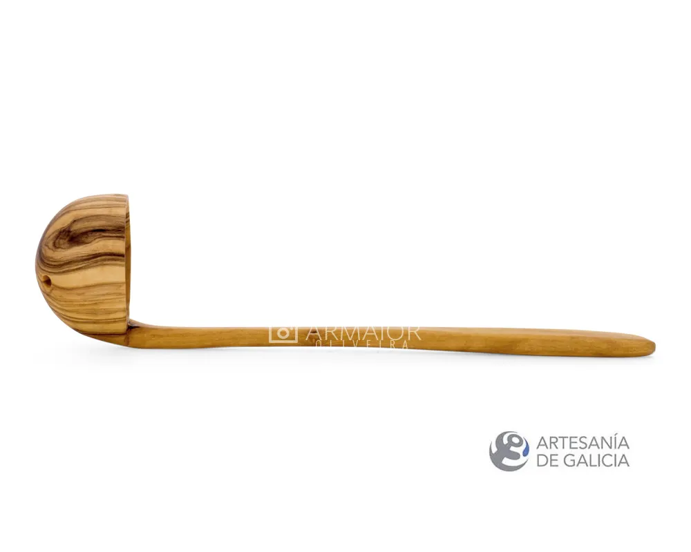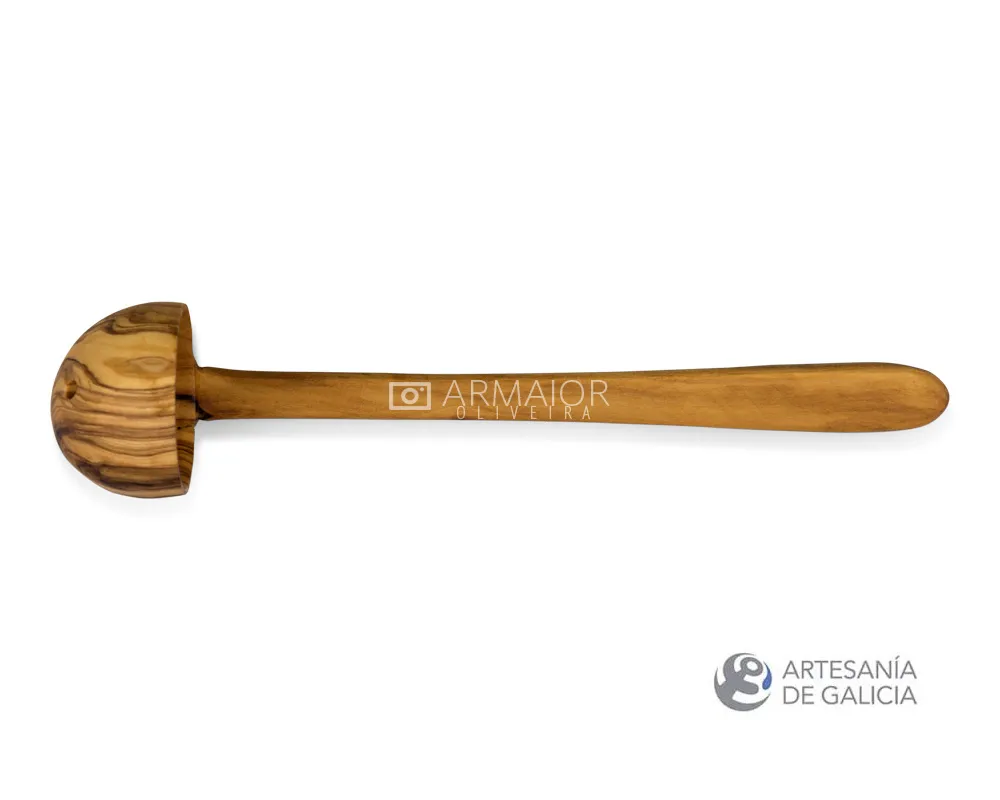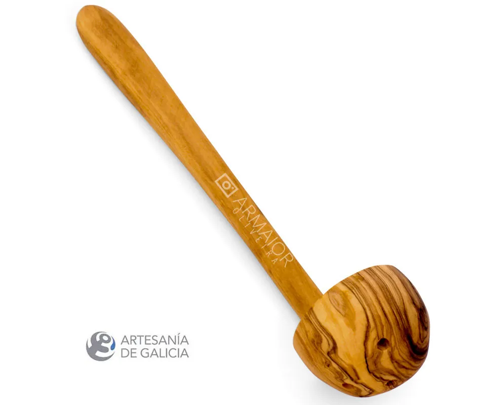 Cazo para sacar aceitunas hecho a mano en madera de olivo. Cazo para sacar las aceitunas del bote con sus agujeros para que escurra el líquido donde se conservan y servirlas en el plato con facilidad.