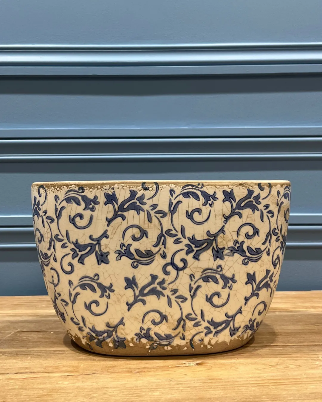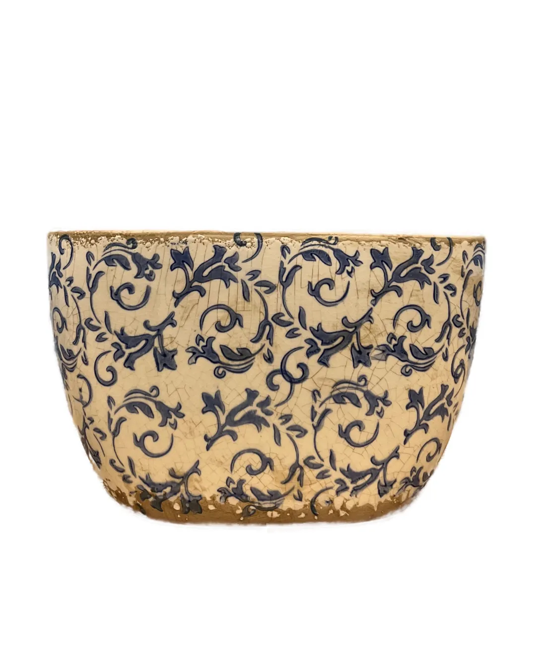 Cuenco/macetero de porcelana antigua efecto desgastado. Medidas 13,5 x 12,5 x 23 cm.