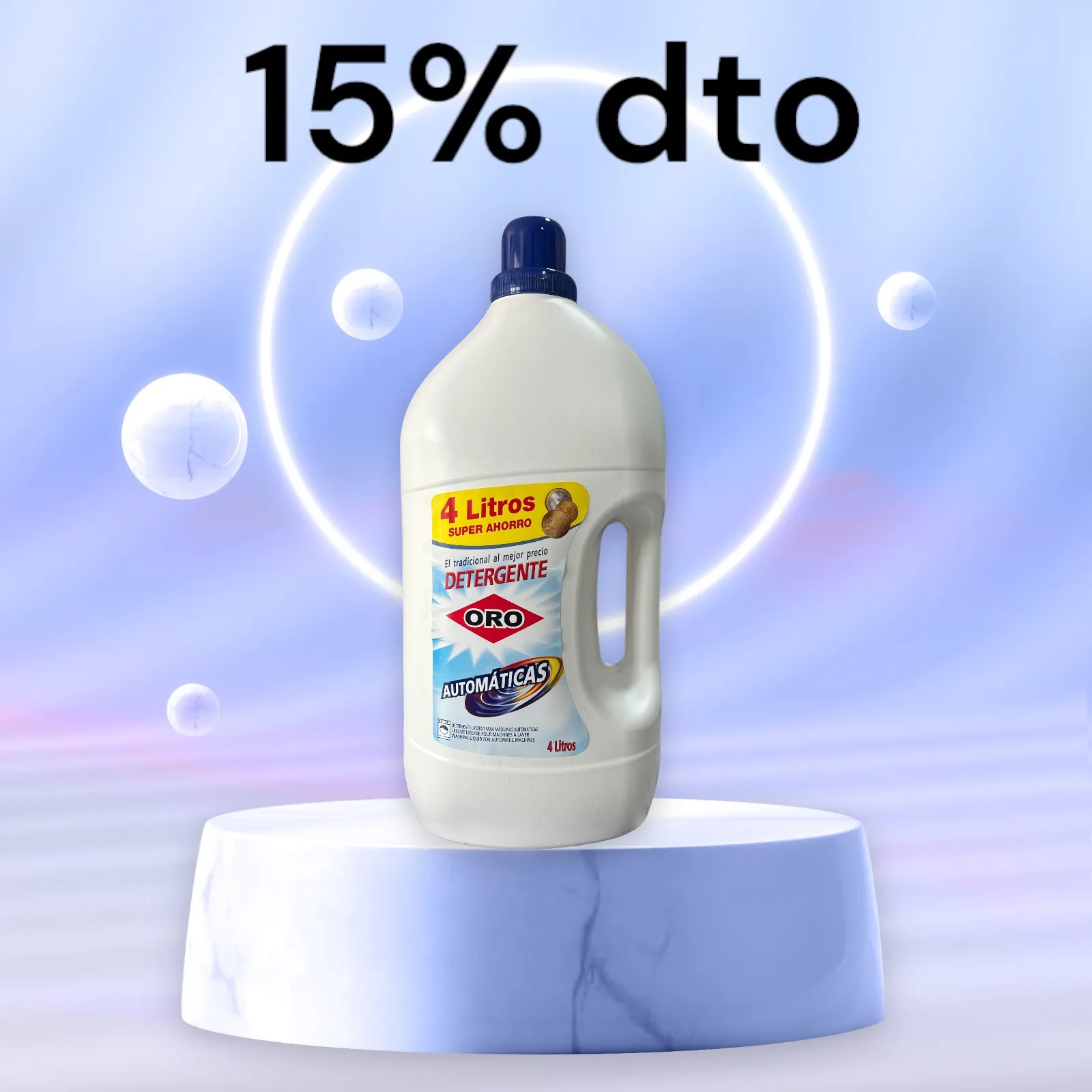 El detergente líquido para Automáticas de ORO, es un detergente líquido con un gran poder de limpieza gracias a su fórmula con blanqueantes ópticos. Perfecto para todo tipo de tejidos y eficaz tanto en ropa blanca como de color. Cuida y protege las prendas y les otorga una fresca fragancia.