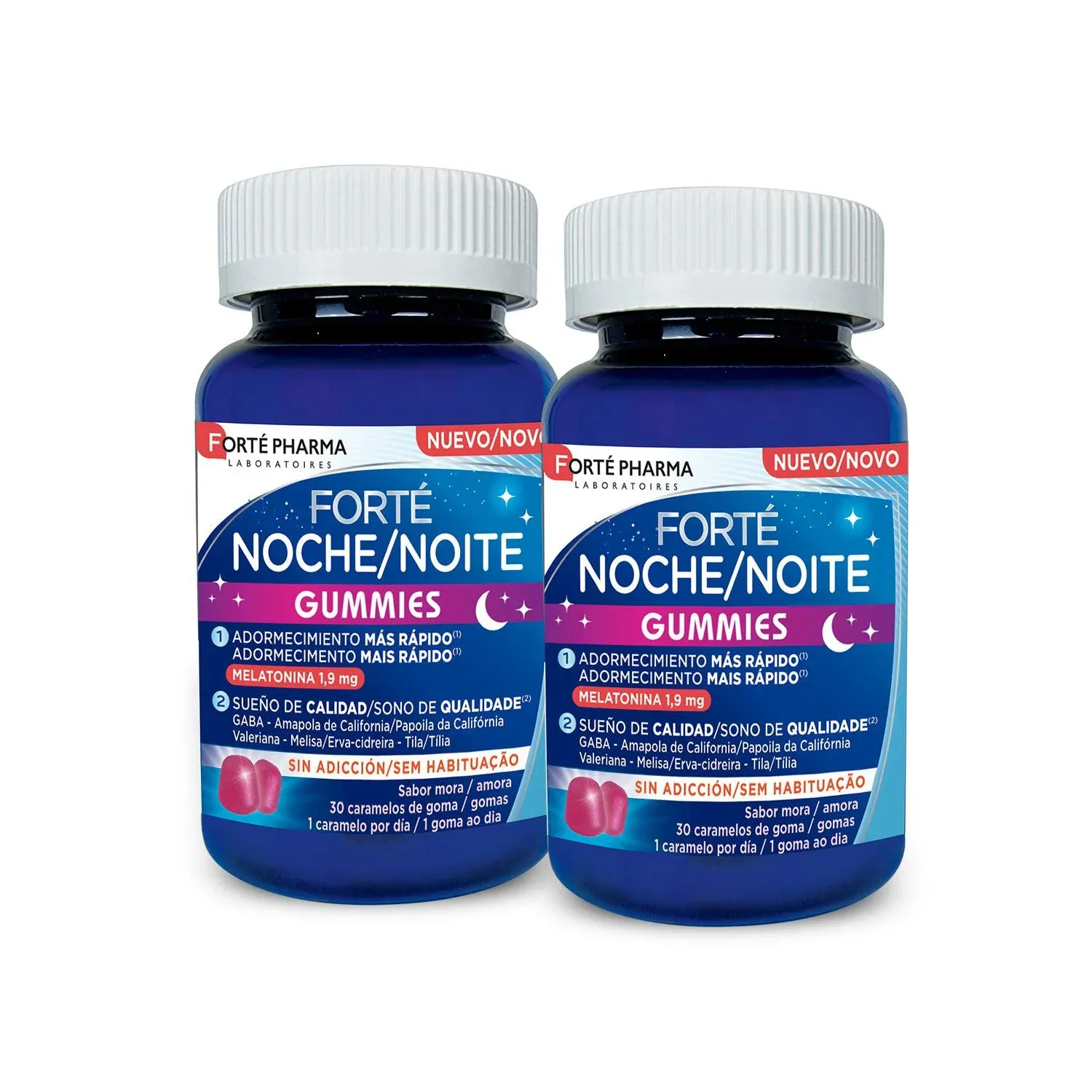 Forté Noche Gummies es un complemento alimenticio elaborado a base de GABA y reforzado con 4 plantas: amapola de California, valeriana, melisa y tila.