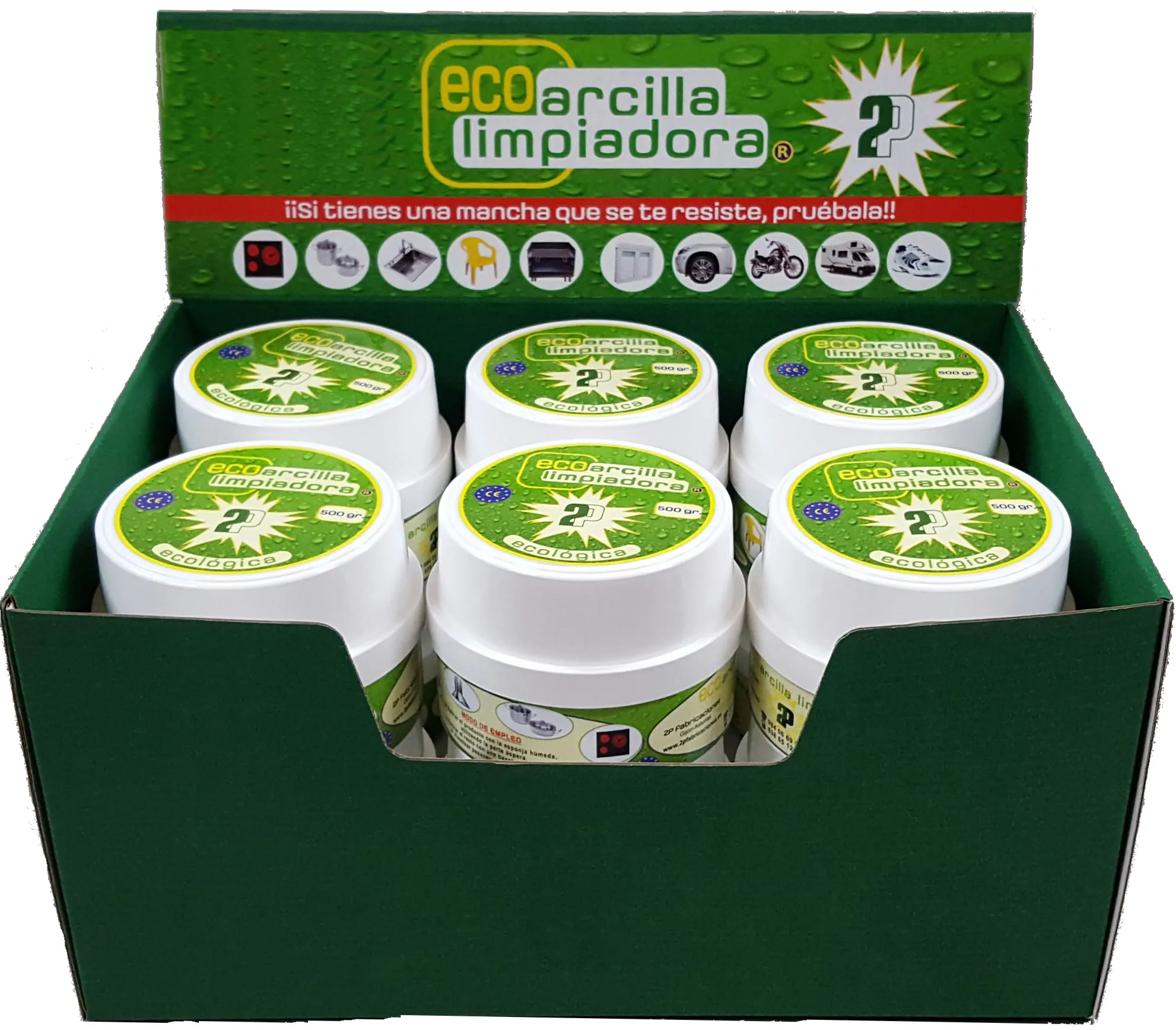 La eco arcilla limpiadora ecológica de 2P Fabricaciones, es un eficaz limpiador de todo tipo de superficies, un aliado para la cocina, en el baño y en el jardín. Un potente quitamanchas de tinta, café, chocolate, sangre, vino… y un gran limpiador de metales que además elimina cal, residuos originados por el agua, moho y óxido.