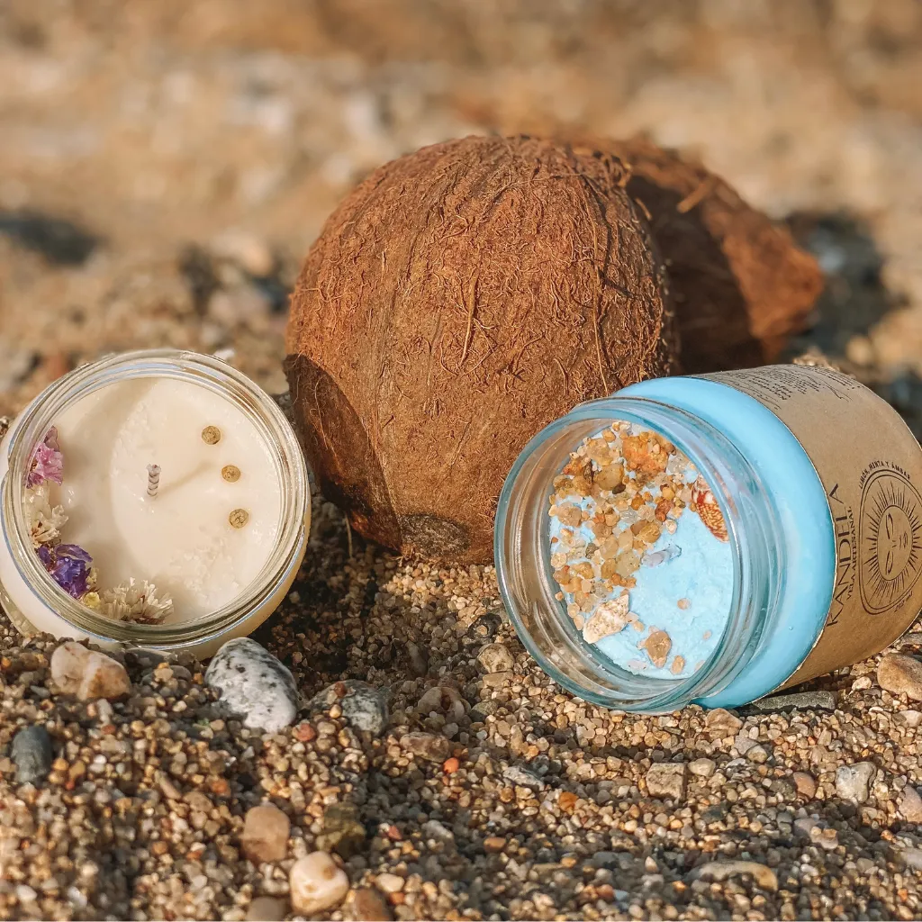 La primera vela, con una mezcla dulce y cremoso de coco y vainilla, evoca la calidez de los días soleados y la suavidad de la brisa tropical. Es perfecta para llenar tu hogar de un ambiente relajante y acogedor, creando una atmósfera de bienestar que te invita a desconectar y disfrutar de la tranquilidad.