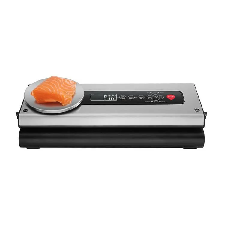 Este equipo de gama alta cuenta con Báscula integrada, teclado y panel de control fácil de usar con varias configuraciones que se pueden aplicar según el tipo de alimento, seco o húmedo, normal o suave, para garantizar el éxito del envasado y sellado.