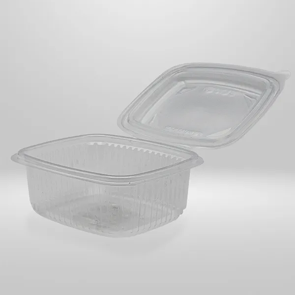 Fabricado con PET de alta calidad, este envase no solo es resistente y duradero, sino que también es apto para uso alimentario, garantizando la seguridad de tus comidas. Su diseño con tapa bisagra asegura un cierre hermético, manteniendo tus alimentos frescos por más tiempo y evitando derrames no deseados.