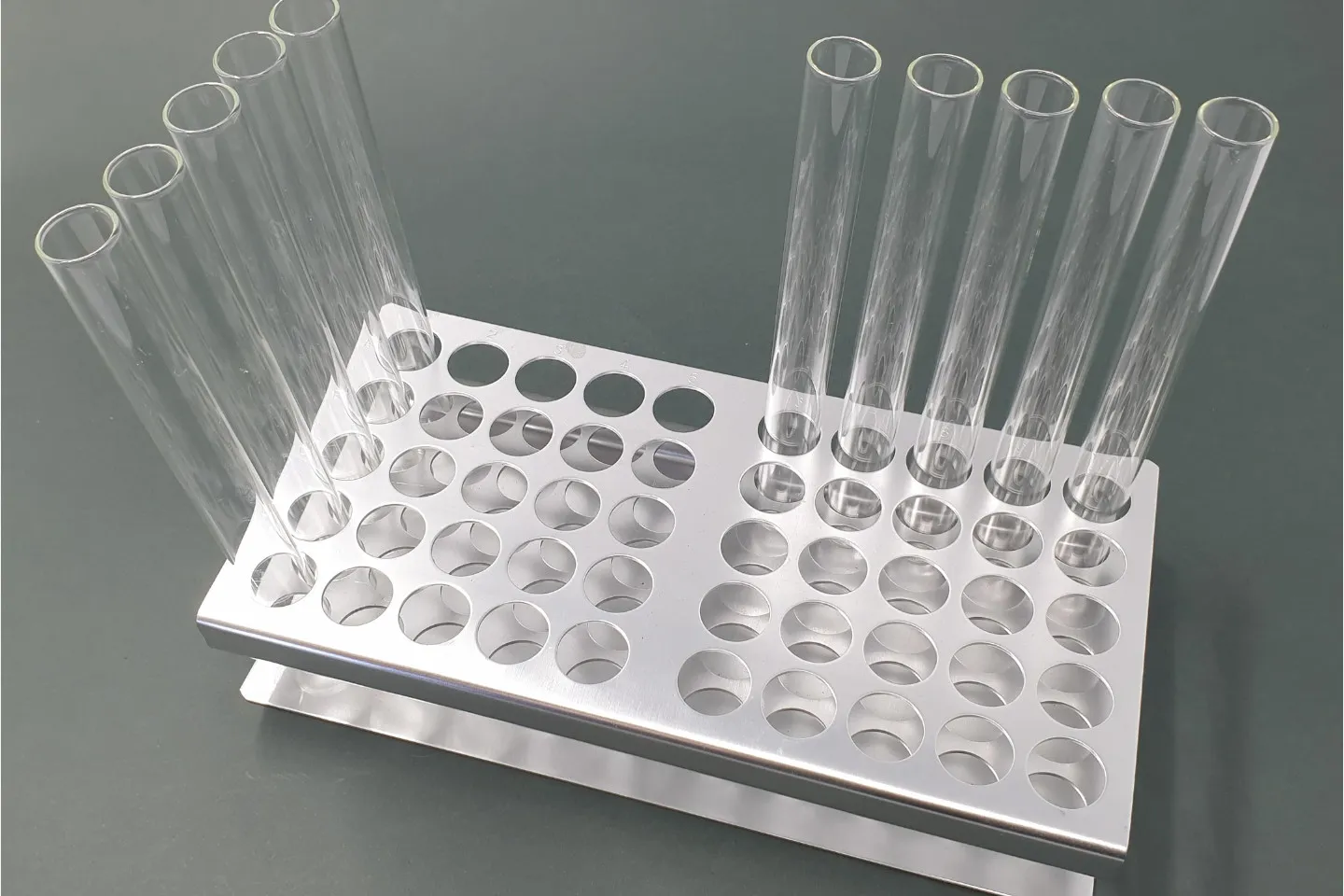 Gradilla en acero con forma de Z para 50 unidades de probeta.