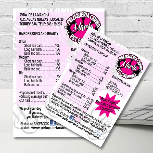 Flyers (folletos) tamaño A5 – 1/2 Folio – 15x 20 cm (también horizontal 20 x 15 cm) impresos a todo color por ambas caras en papel couche de 135 g.