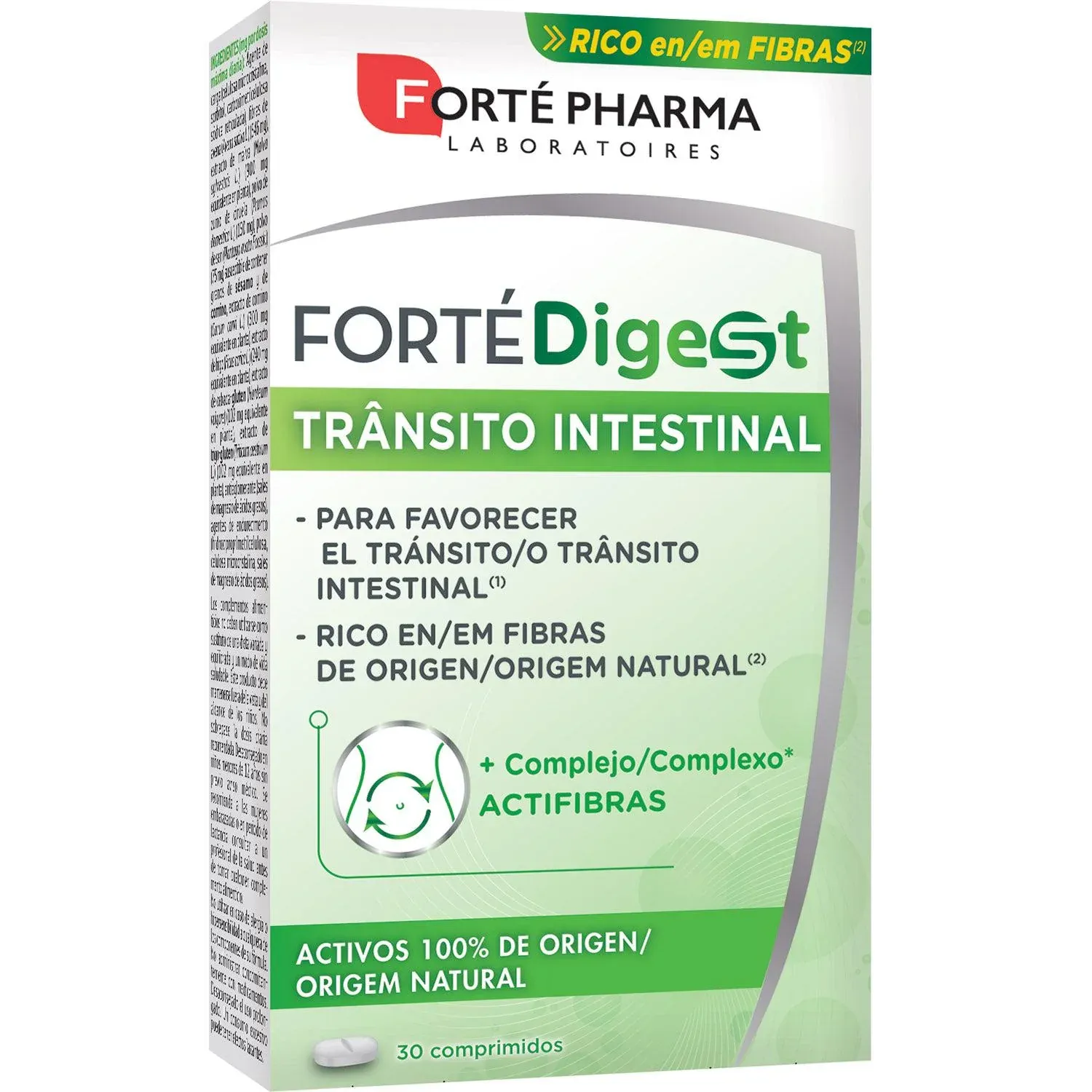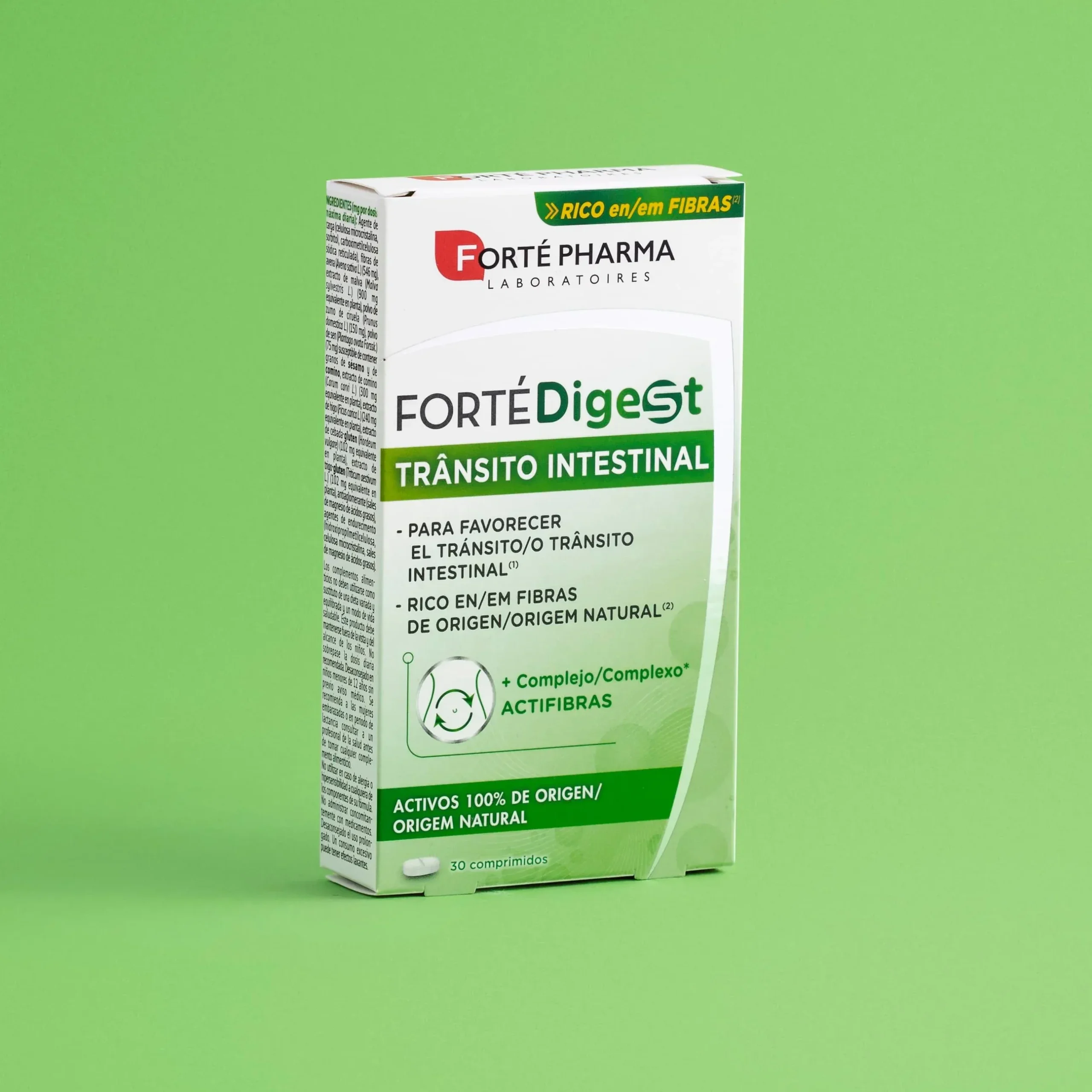 Forté Digest Transito Intestinal es un complemento alimenticio a base de fibras y plantas como la malva, la ciruela, el higo y el plantago ovata.