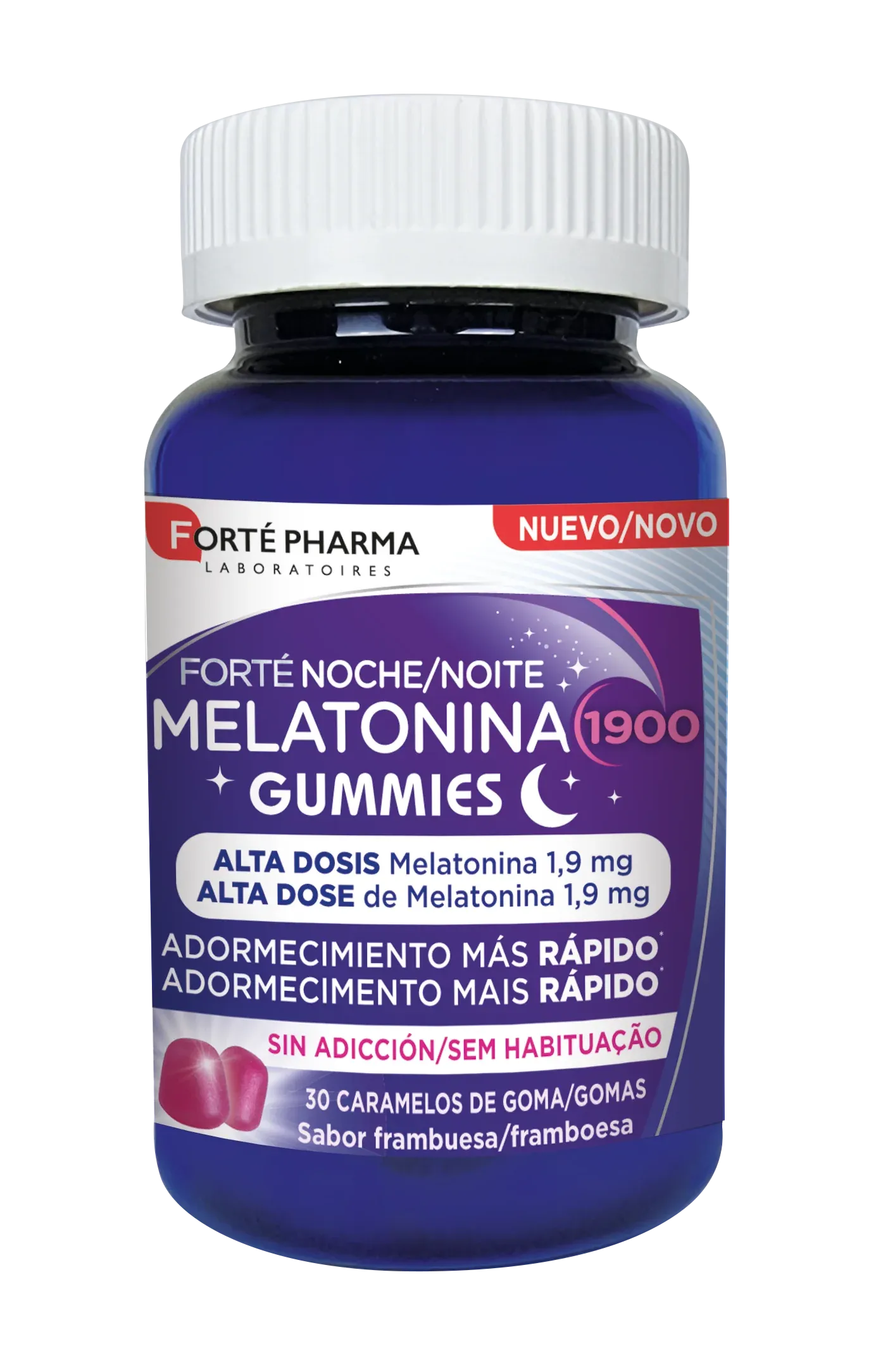 Forté Noche Melatonina 1900 Flash Gummies es un complemento alimenticio a base de melatonina.
