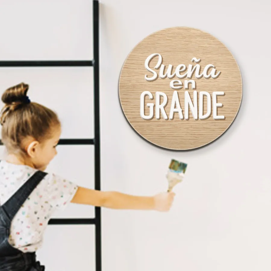 Toda nueva aventura empieza con un sueño y contra más grande el sueño mejor será la aventura. Te hemos preparado esta hermosa frase para decorar vuestro hogar o para regalar a alguien especial. La base es en madera rechapada de roble con barniz natural y las letras son lacadas en color blanco satinado. Puedes solicitar por correo el color que desees y transformarla en una pieza única sólo para ti.