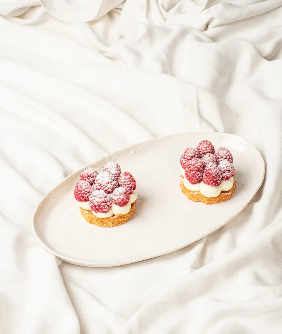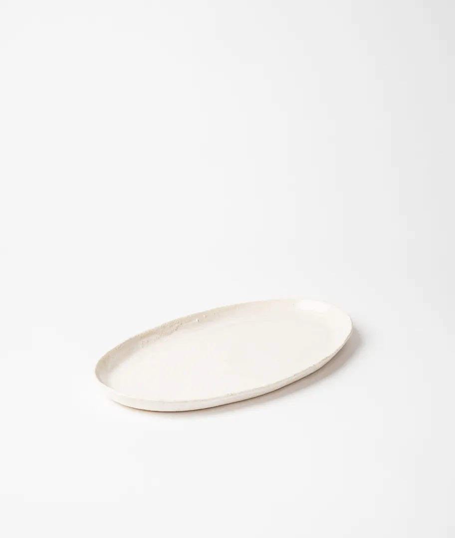 Bandeja ovalada en gres blanco.