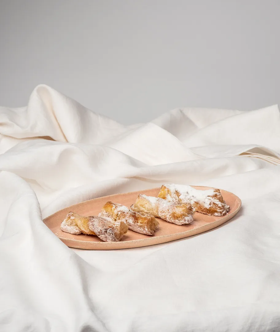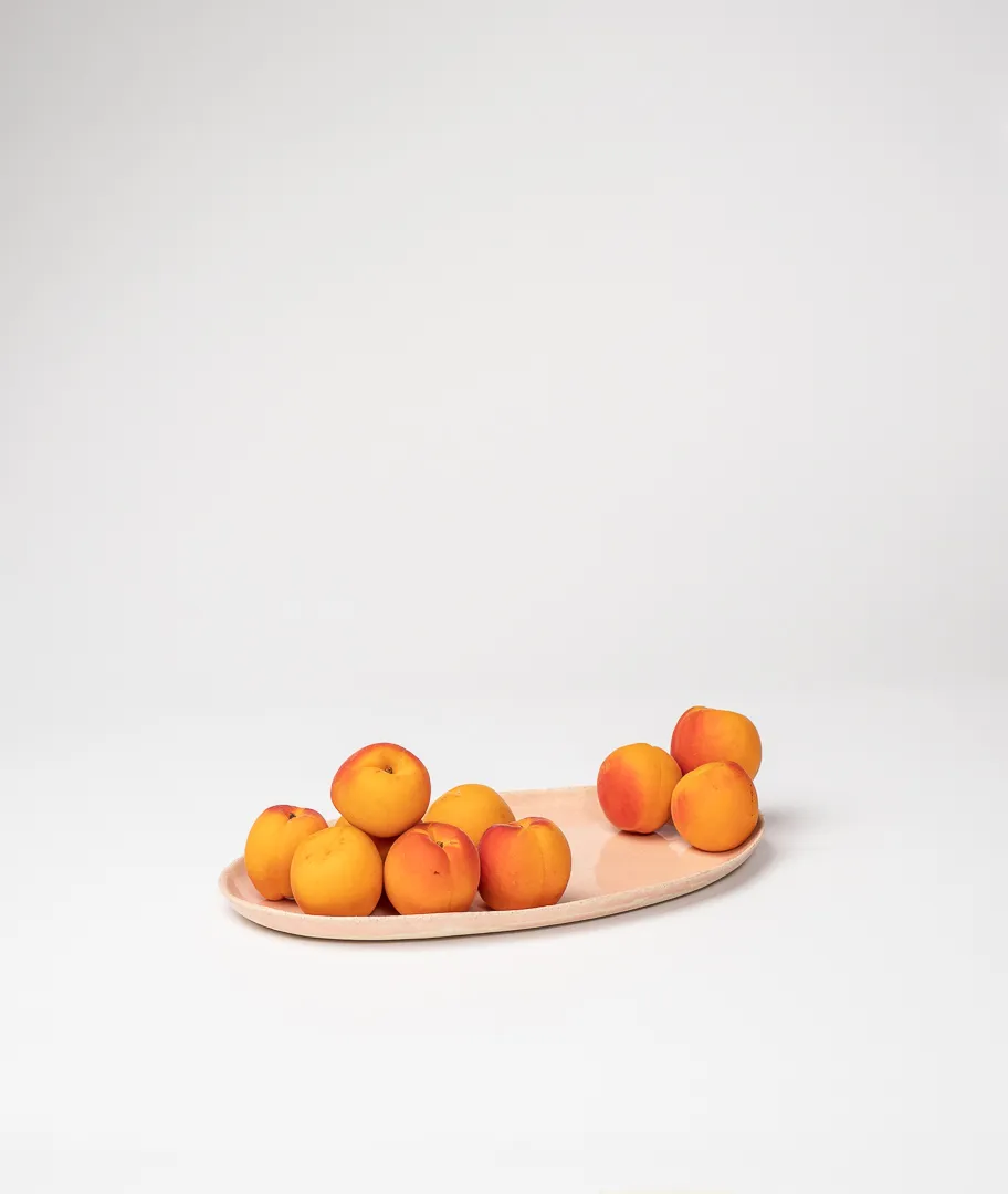 Fuente ovalada realizada en color rosa pálido.