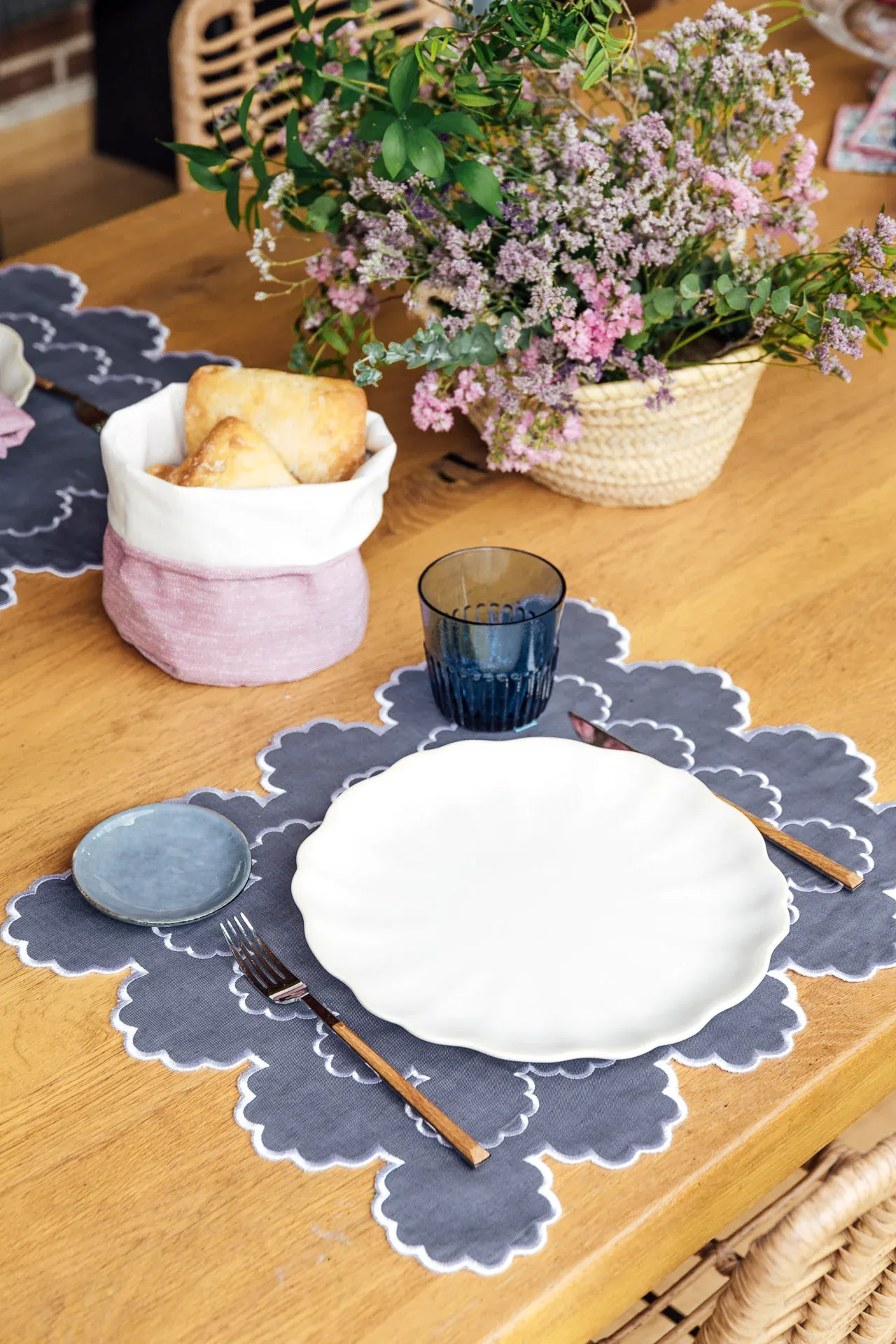 Mantel Individual reversible confeccionado en lino gris y blanco. Base ideal para la mesa. Juega combinando las caras del individual para crear dos ambientes distintos. Combínalo con la Servilleta Soller o las Servilletas Cuca.