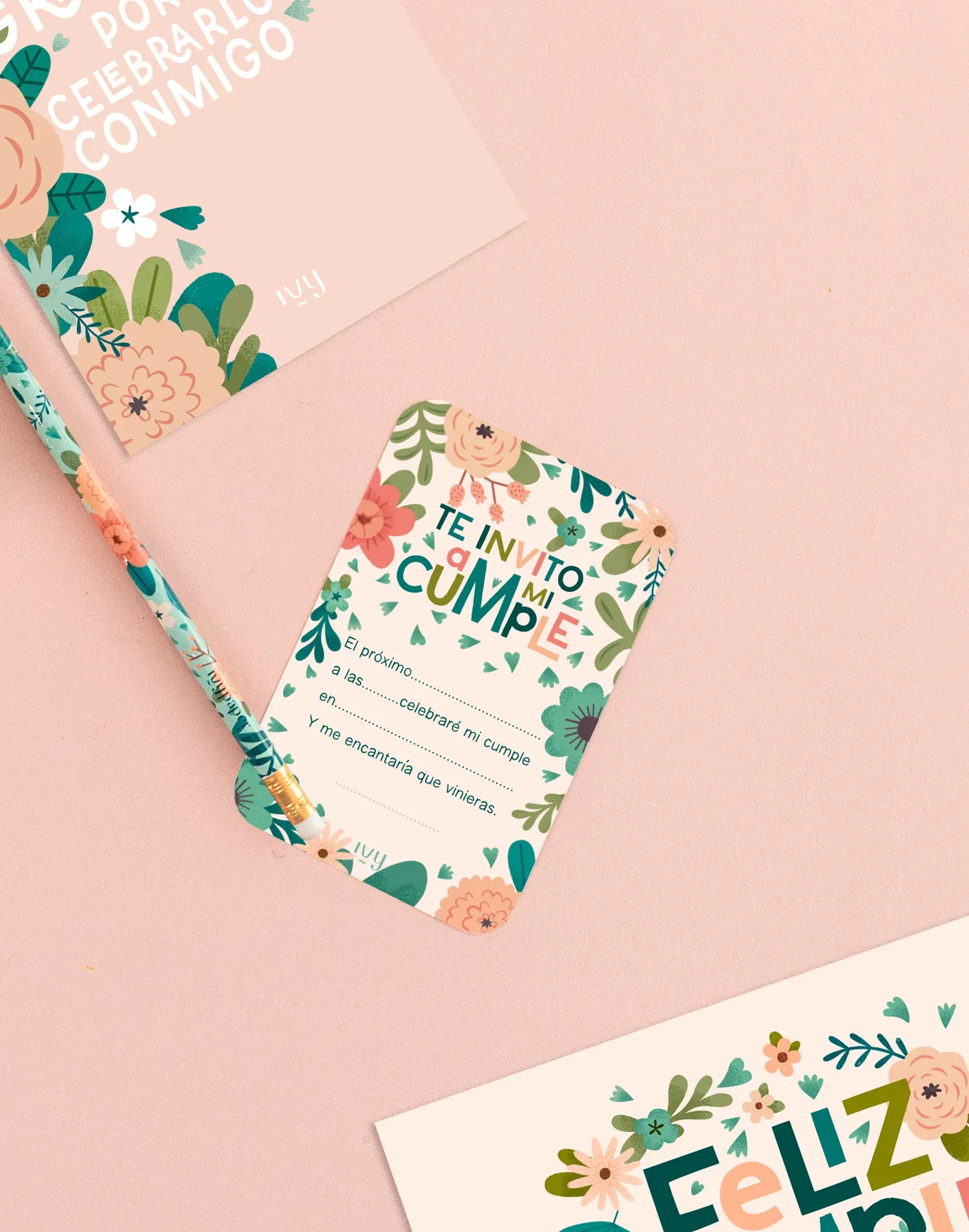 Paquete de 10 invitaciones de 11,5 x 8 cms para rellenar.