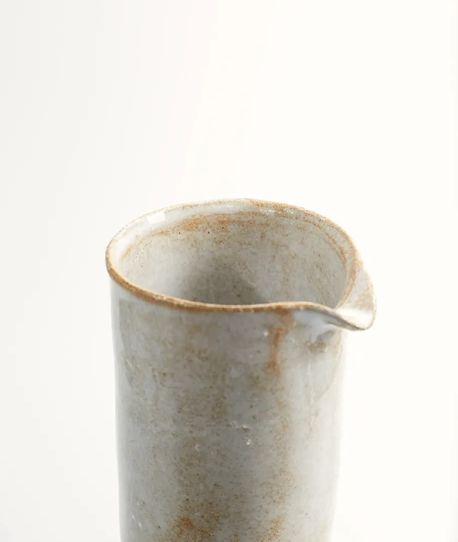 Jarra cilíndrica irregular realizada en gres.