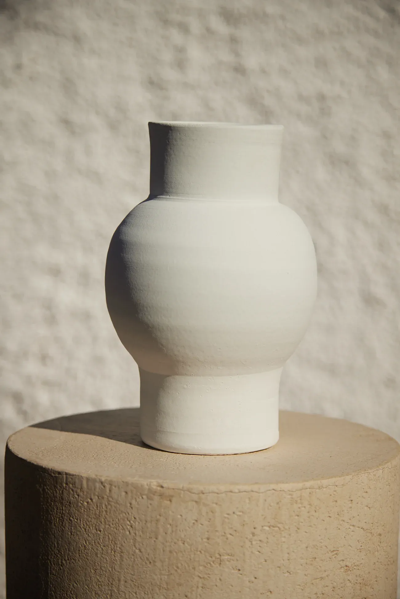 Jarrón realizados a mano de cerámica esmaltados en blanco.