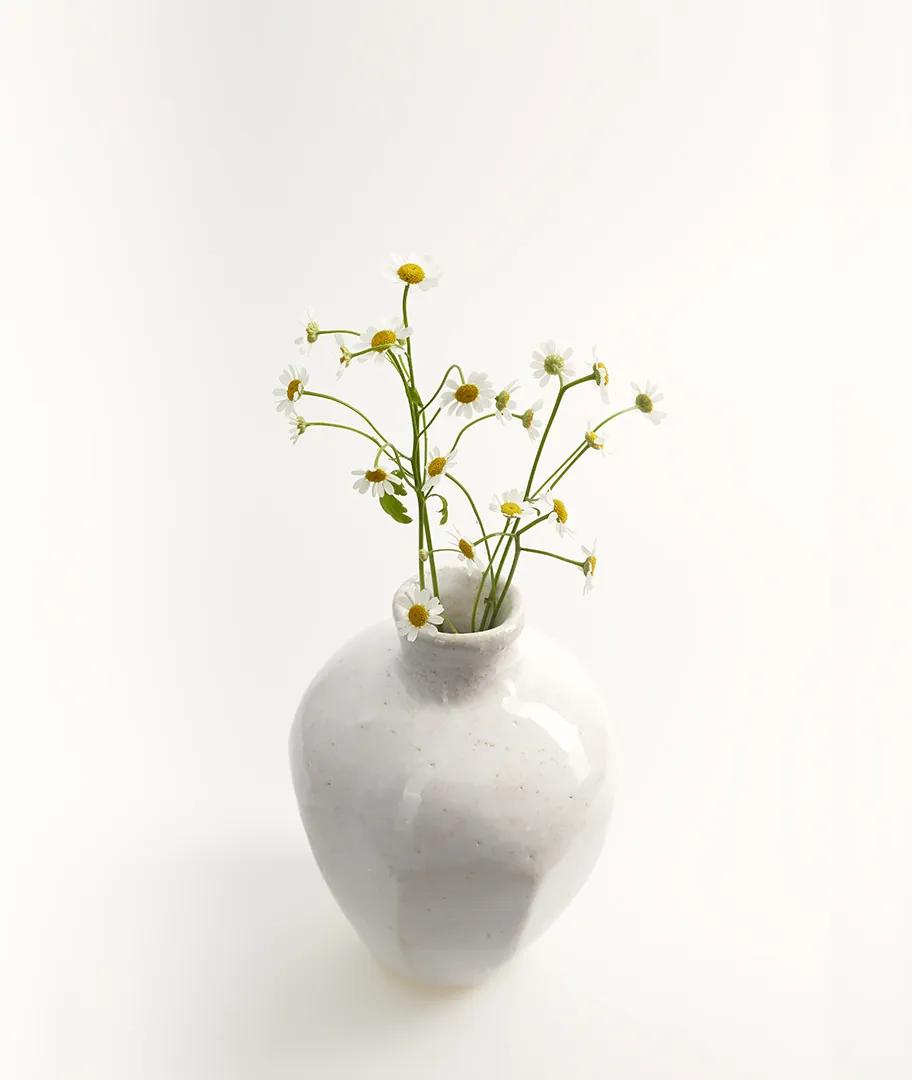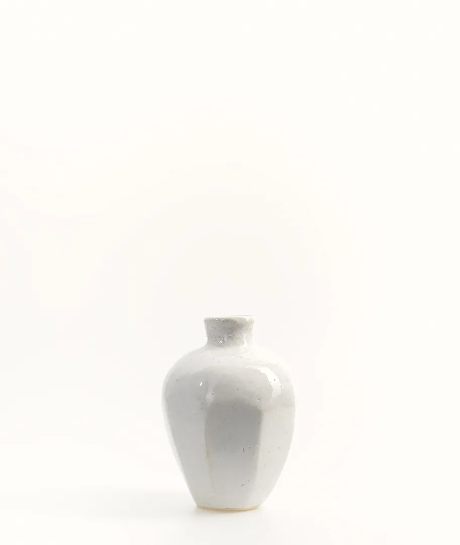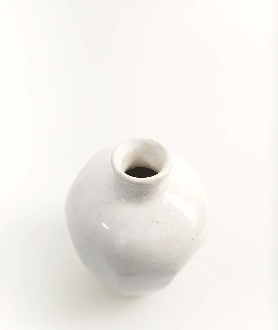 Jarrón redondeado blanco hecho en gres.