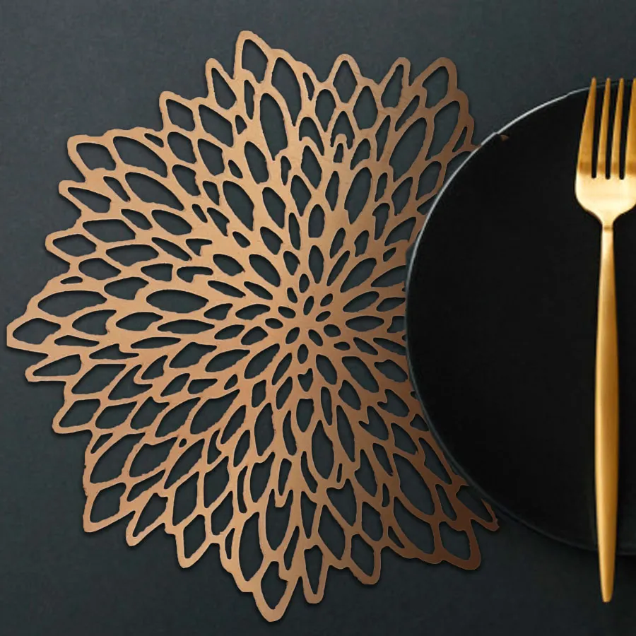 Dale un toque de glamour y diseño a tu mesa con este juego de manteles individuales en color oro y a su vez protégela de las incómodas manchas. La pieza está fabricada en madera pintada y vienen con una base de madera.