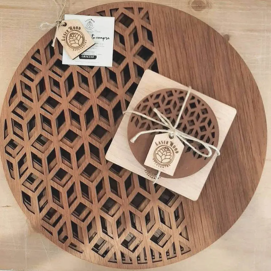 Dale un toque de diseño a tu mesa con este juego de 4 individuales redondos con un original diseño troquelado, van perfecto en una mesa redonda. La pieza está fabricada en contrachapado de roble acabado en barniz oscurecido, los cantos son negros. Puedes solicitar por correo el color o texto que desees grabar y así transformarla en una pieza única sólo para ti.