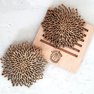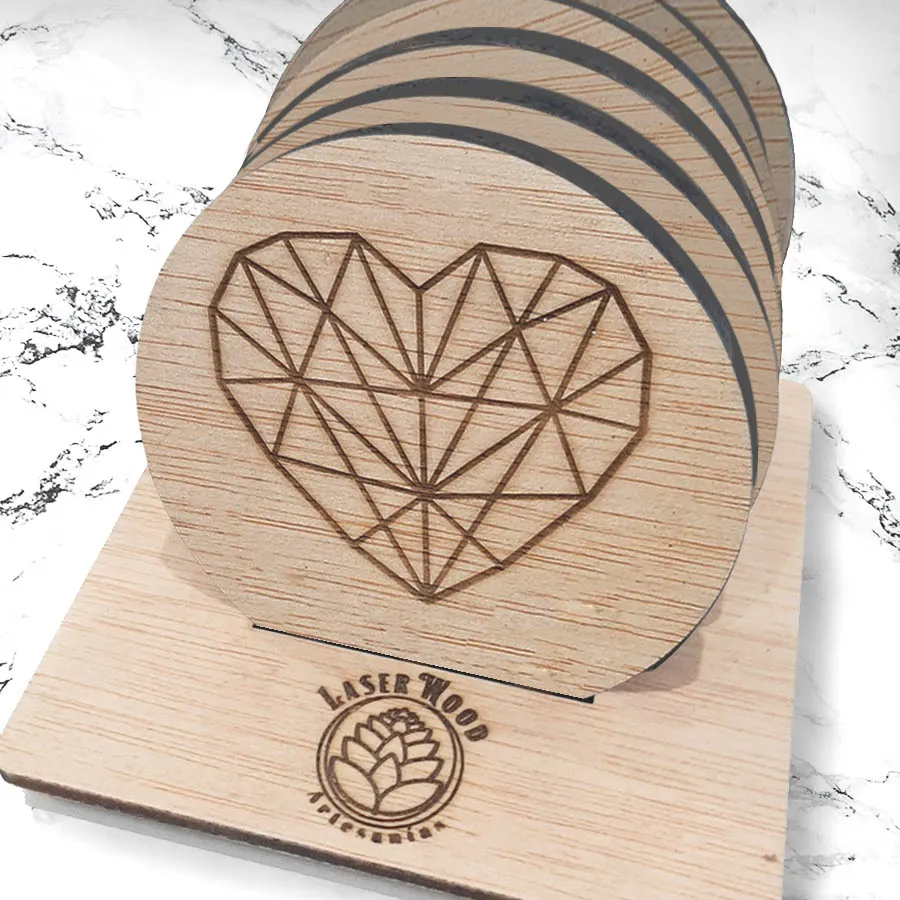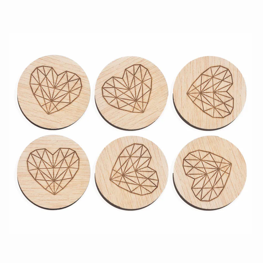 Dale un toque de diseño a tu mesa y a su vez protégela de las incómodas manchas de los vasos y copas con este juego de 6 posavasos cuadrados grabados. La pieza está fabricada en madera barnizada. Puedes solicitar por correo el color que desees, grabar un texto y así transformarla en una pieza única sólo para ti.