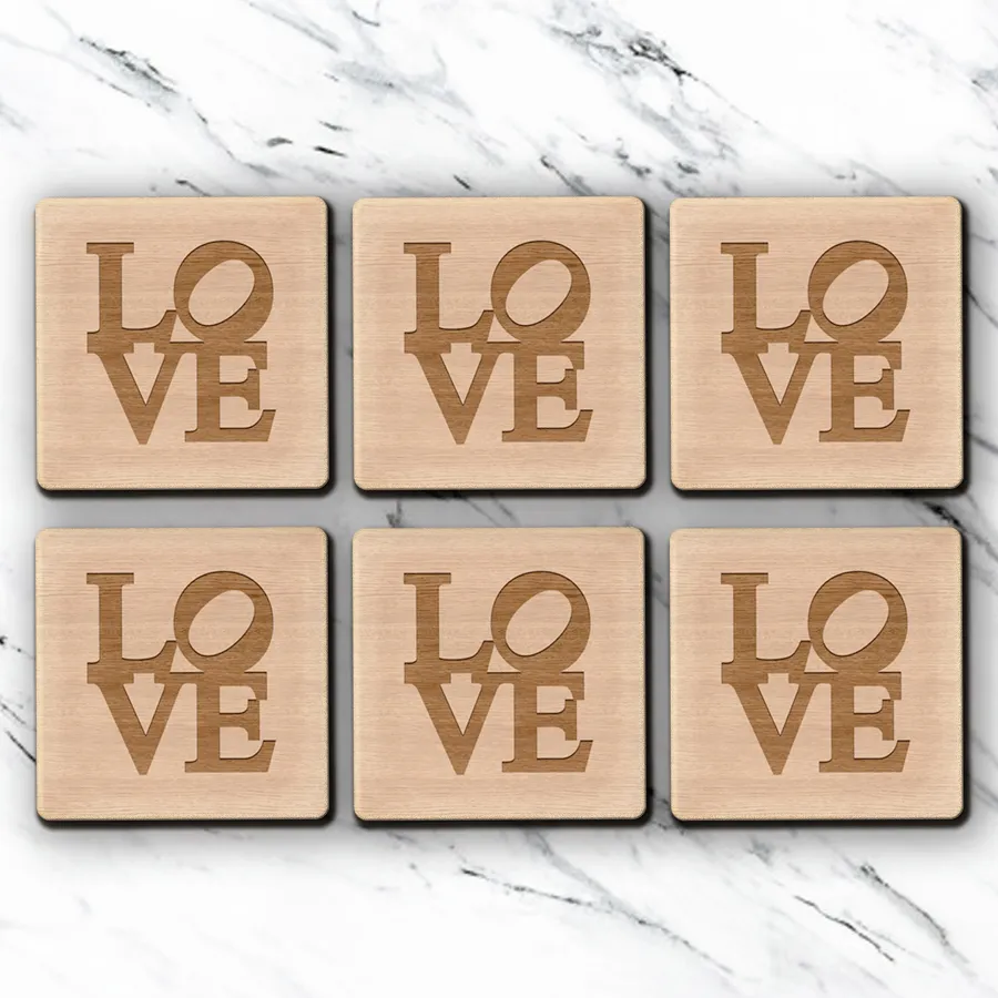 Juego 6 Posavasos Love Grabado Cuadrado PERSONALIZADO