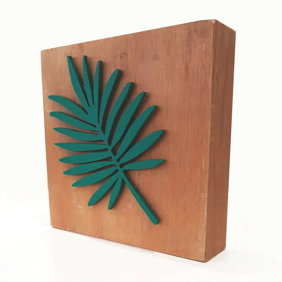 Integra a tu decoración un hermoso diseño de tres piezas con diseño de hojas tropicales. El cuadro está fabricado en madera de pino con acabado en barniz natural y hojas en DM acabadas en lacado verde satinado. Puedes solicitar por correo el color que desees, también podemos grabar tu nombre, el de tu familia u amigos y así transformarla en una pieza única sólo para ti.