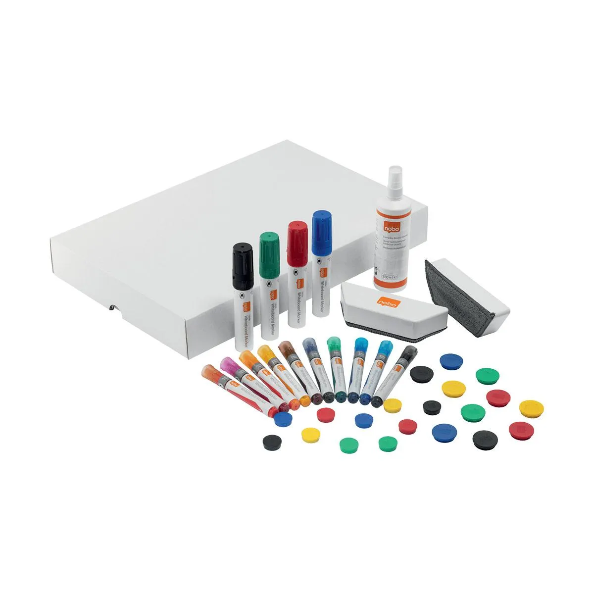 - 10 rotuladores de pizarra blanca de colores surtidos;