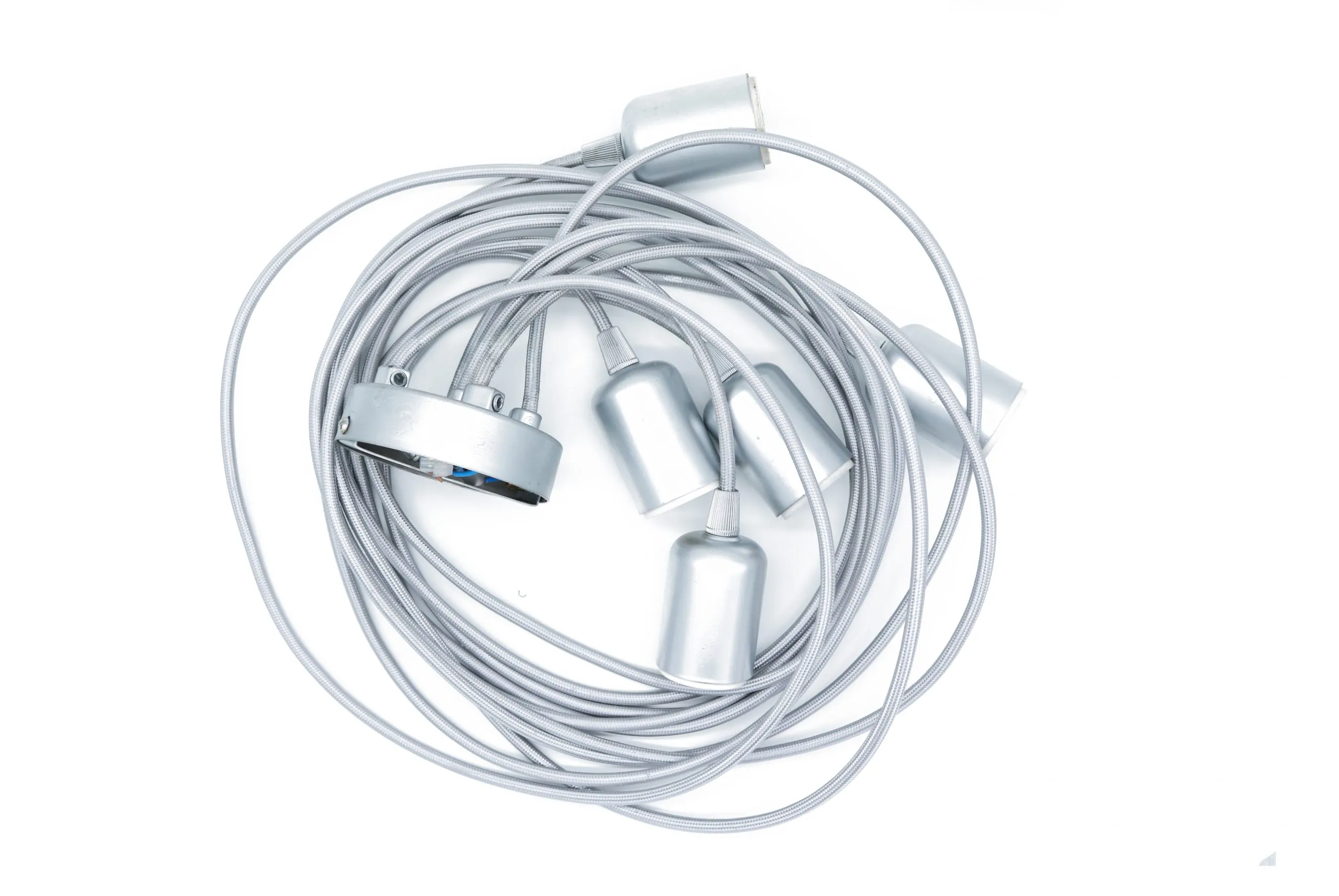 Lampara techo Araña cable redondo Plata cubre completo 5 puntos luz con 2 metros de largo