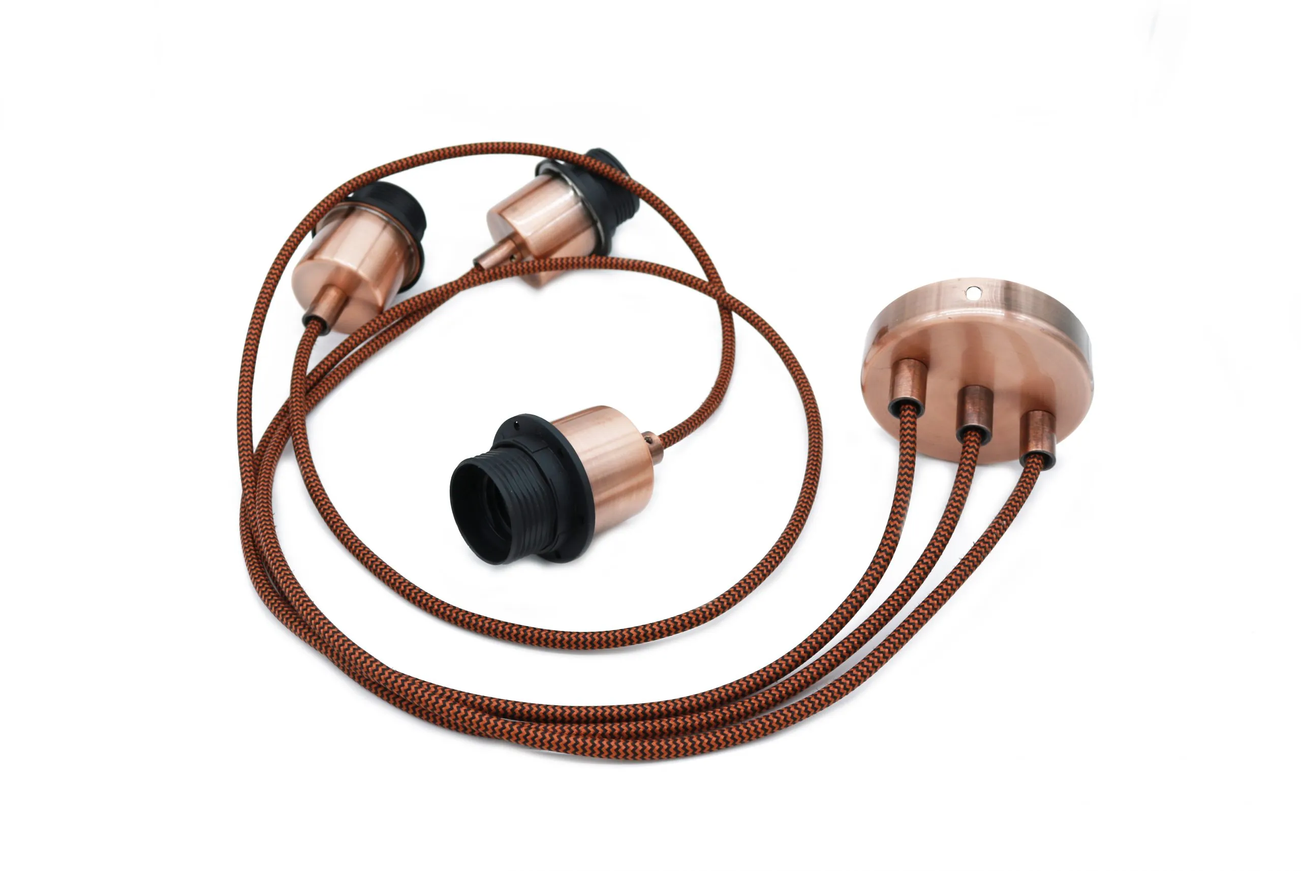 | Lampara techo Cupra cable redondo cubre medio casquillo para pantalla con 3 puntos de luz de 1,50 metros de largo escalable. |
