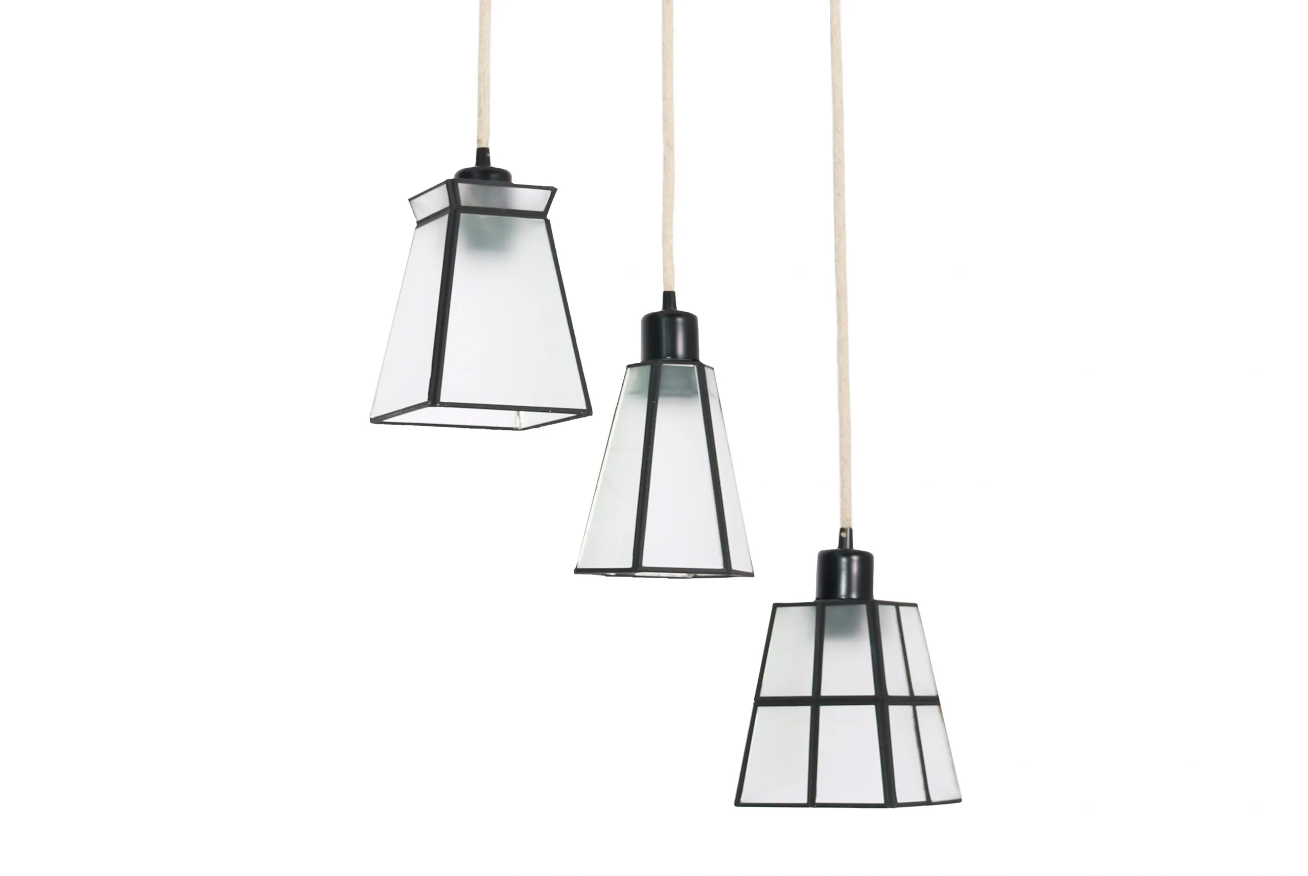 Lampara techo Madera negra cable redondo soga pantalla Granada 1 con 3 puntos de luz escalado