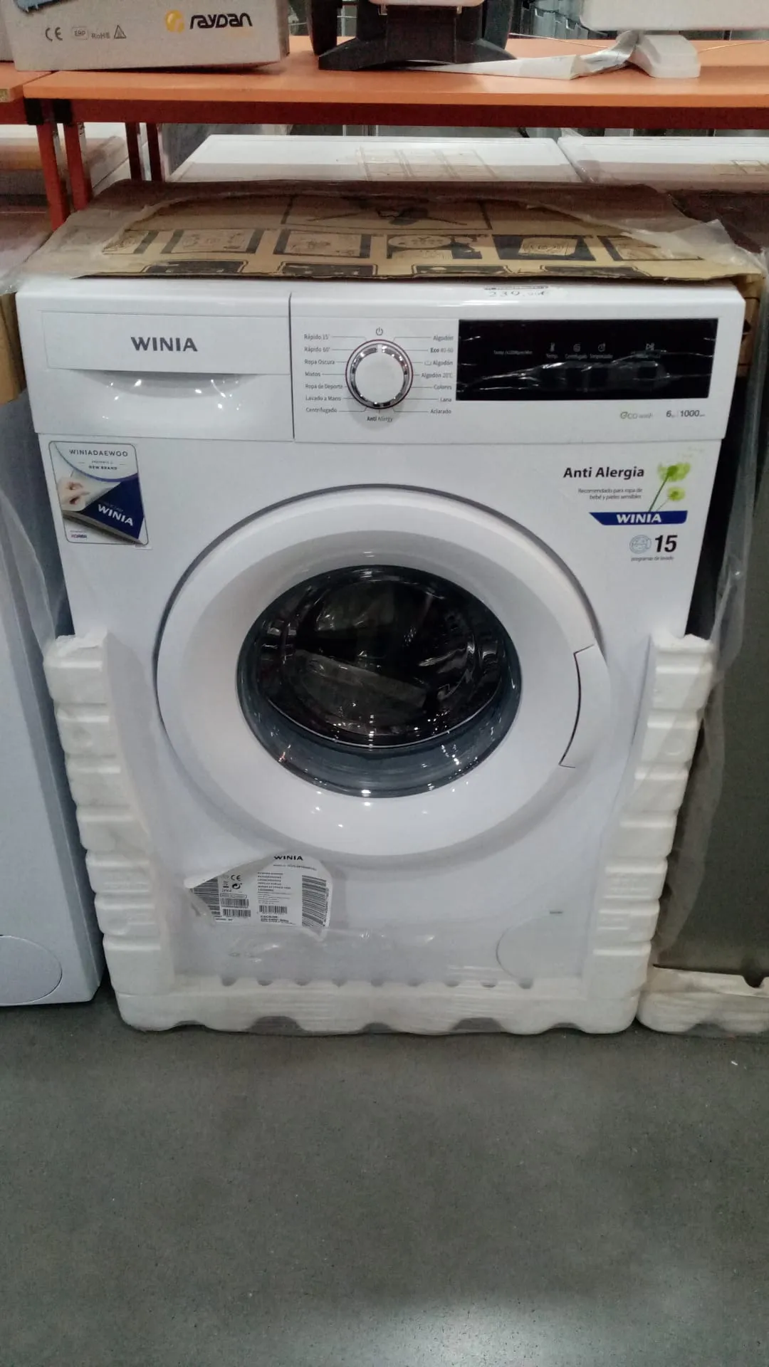 Lavadora Winia. Capacidad de 6 kg. Velocidad de centrifugado 1000 rpm. Clase energética D.