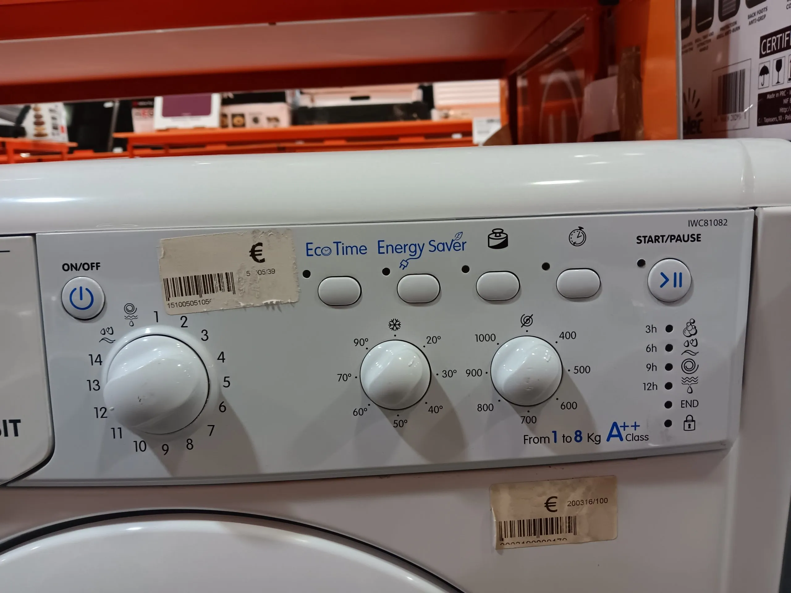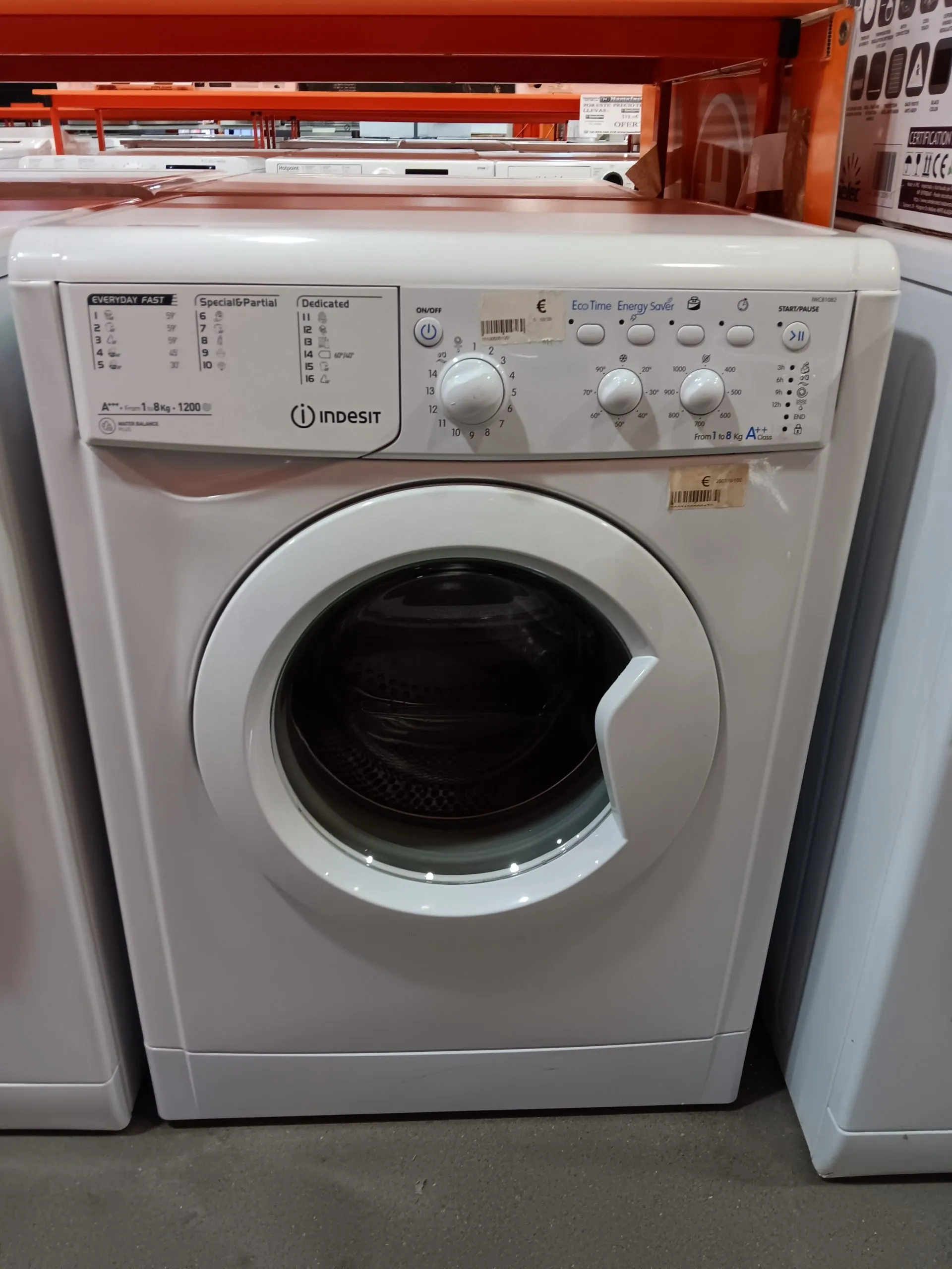 Lavadora Indesit . Capacidad de 8 kg. Velocidad de centrifugado 1000 rpm. Clase energética C. Programador y controles manuales.