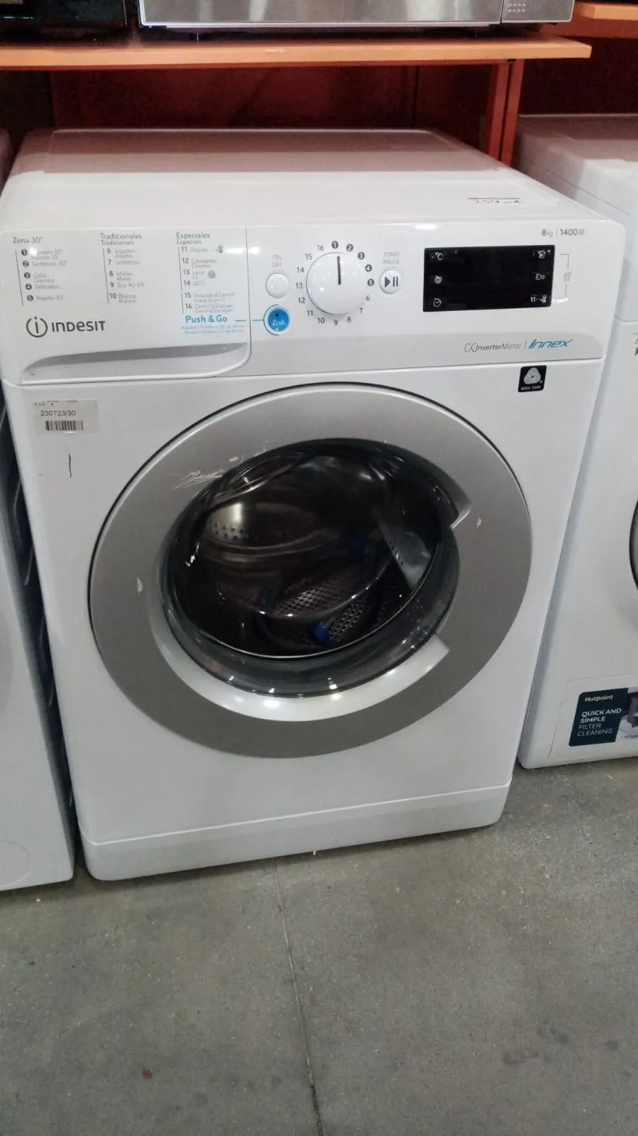 Lavadora Indesit . Capacidad de 8 kg. Velocidad de centrifugado 1400 rpm. Clase energética A.