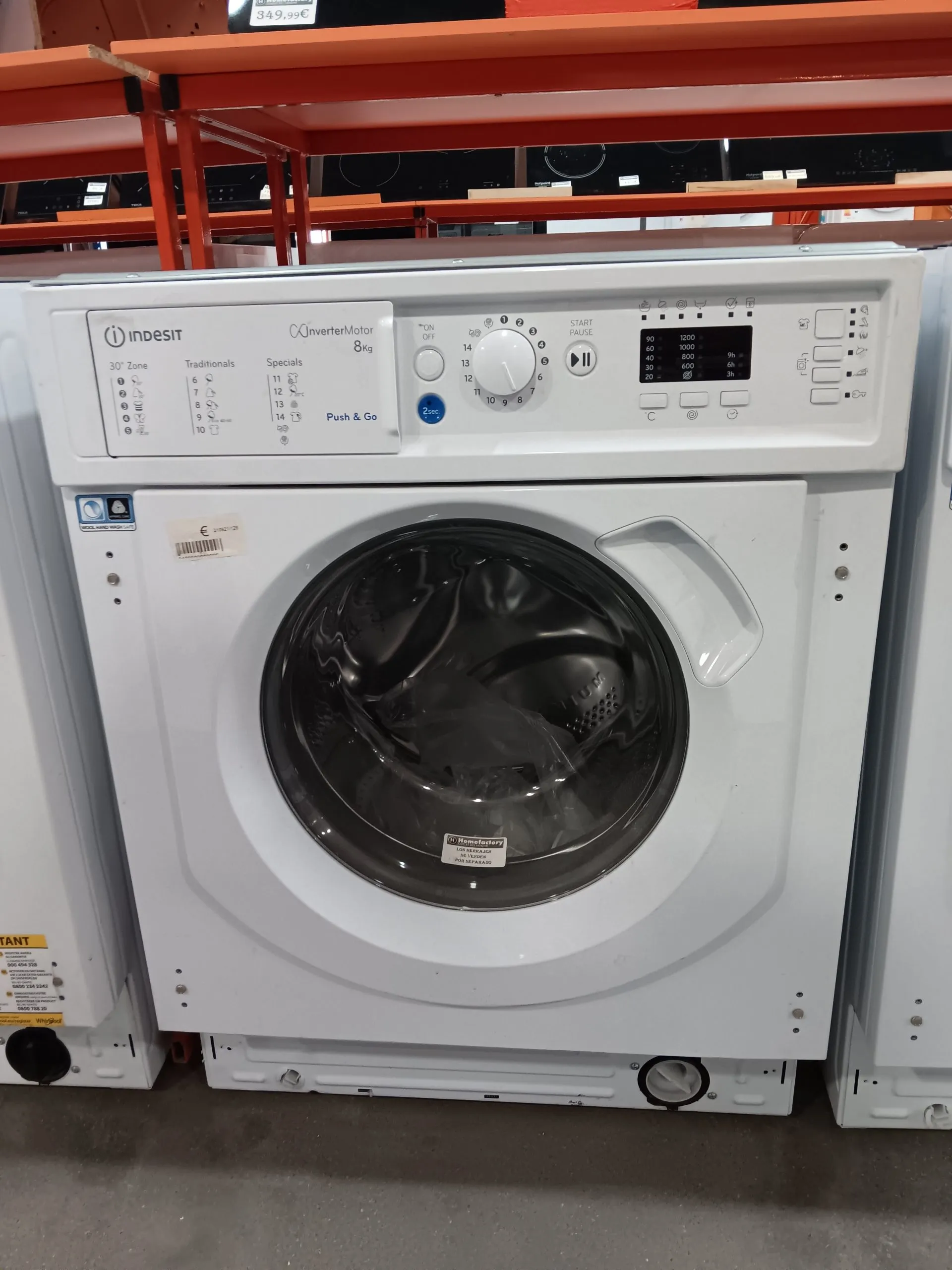 Lavadora integrable Indesit. Capacidad de 8 kg. Velocidad de centrifugado 1200 rpm. Botón inclusivo un toque.