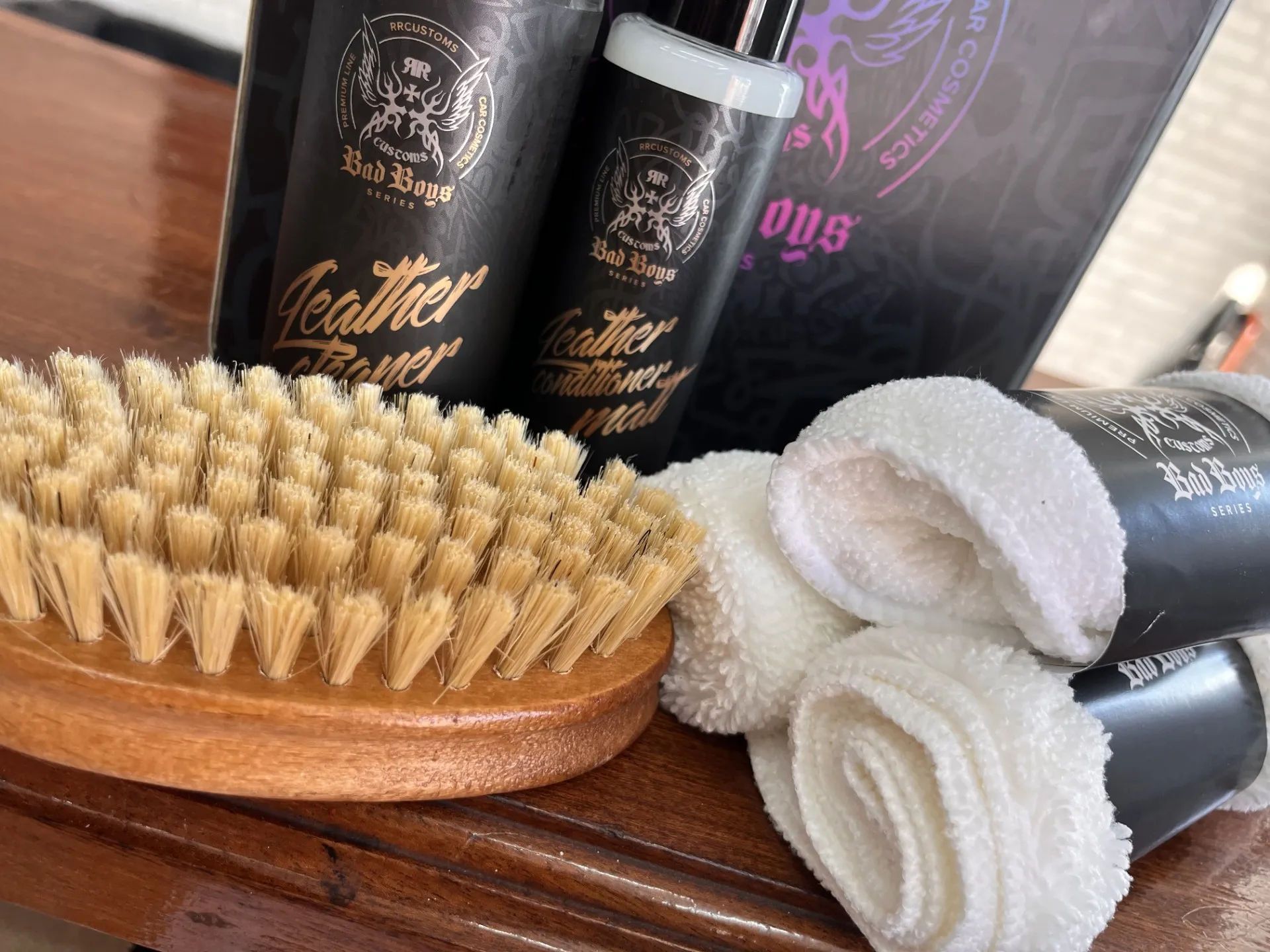 Acondicionador de Cuero Mate 100 ml- se utiliza para impregnar y nutrir las superficies de cuero. El producto penetra profundamente en el cuero dándole flexibilidad, resistencia y fragancia de cuero. Al utilizar el acondicionador de cuero BadBoys, el cuero vuelve a ser suave y terso, y lo deja mate.