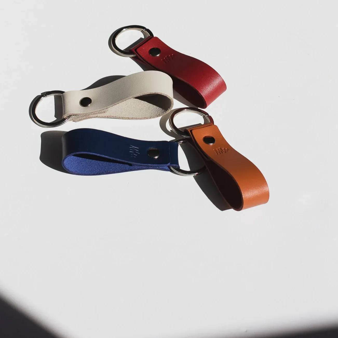 Llavero de cuero personalizable con iniciales o nombre. Cabe perfecto en una mano y diferentes tipos de llave con una anilla resistente.