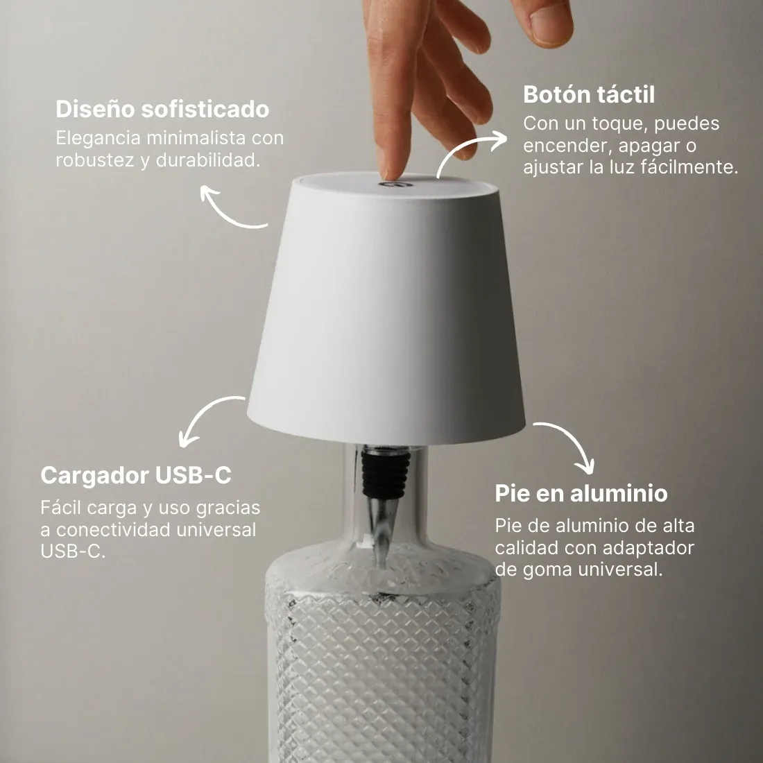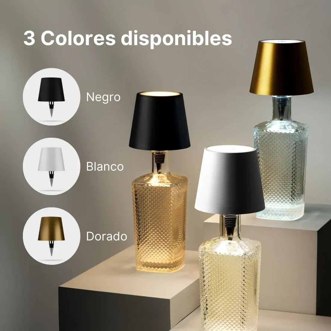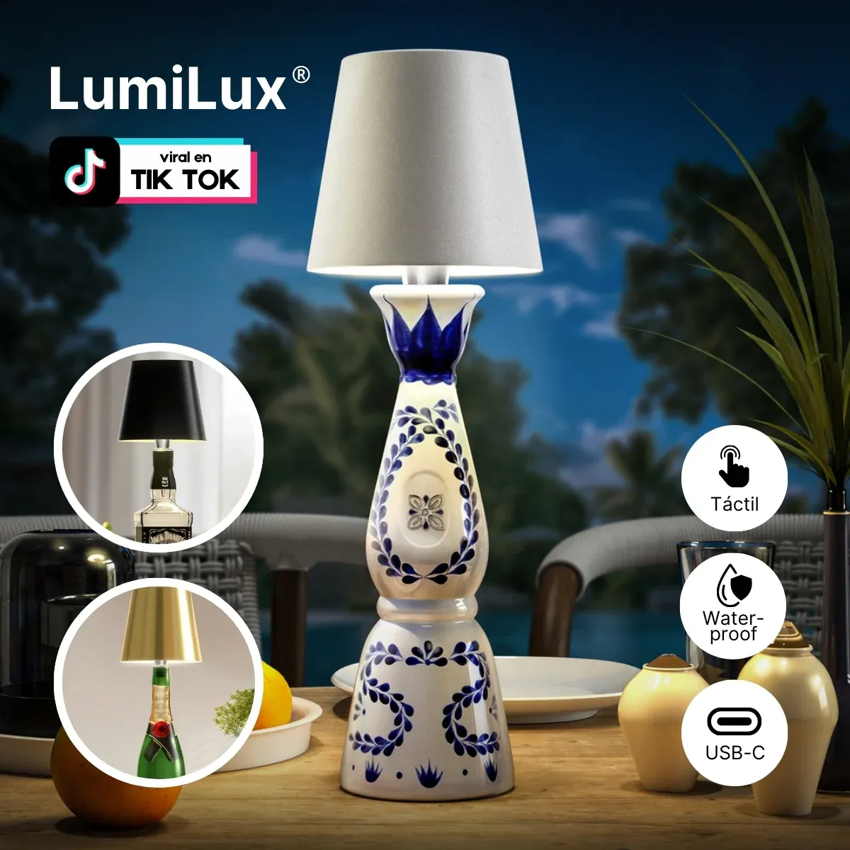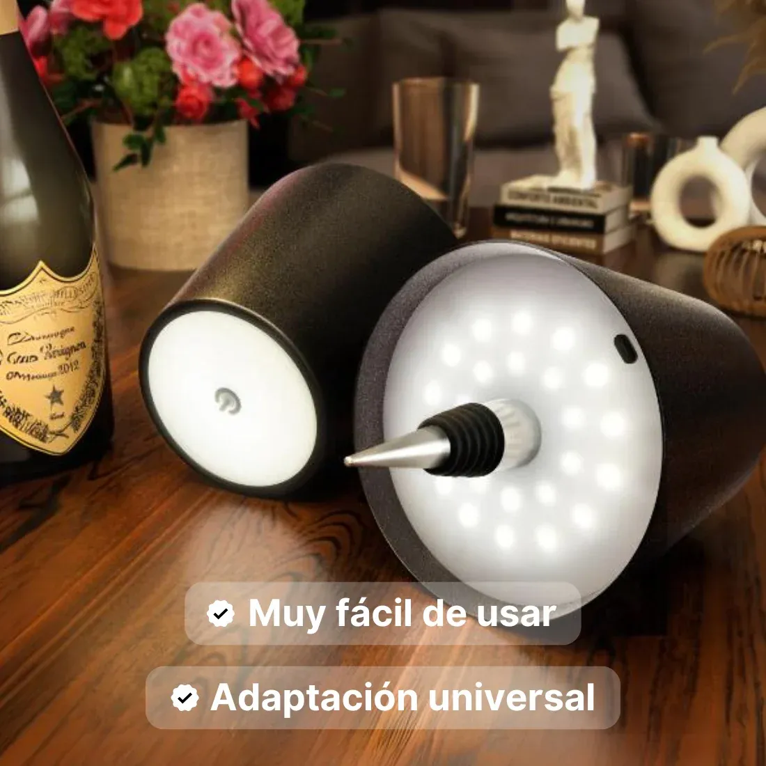 Convierte tus botellas o jarrones en fascinantes lámparas con Lumilux®, una opción innovadora que transforma cualquier botella en una elegante luminaria en segundos. Ideal para cenas, fiestas, o simplemente para personalizar tu hogar, esta lámpara inalámbrica añade un toque de estilo único.