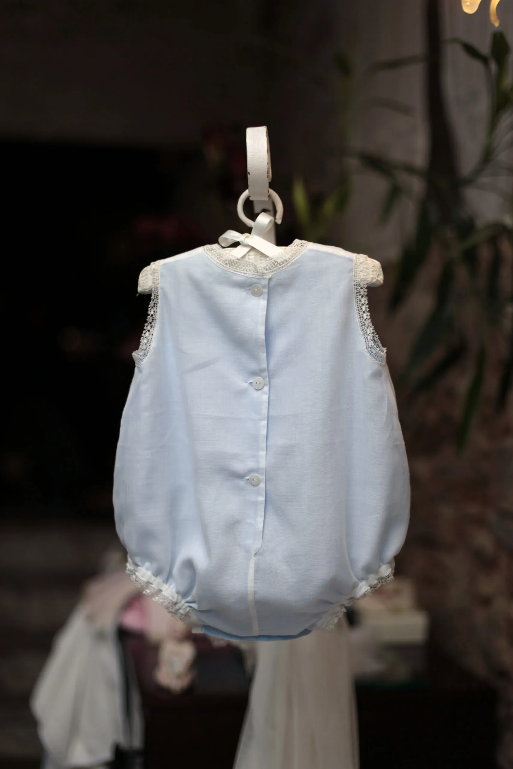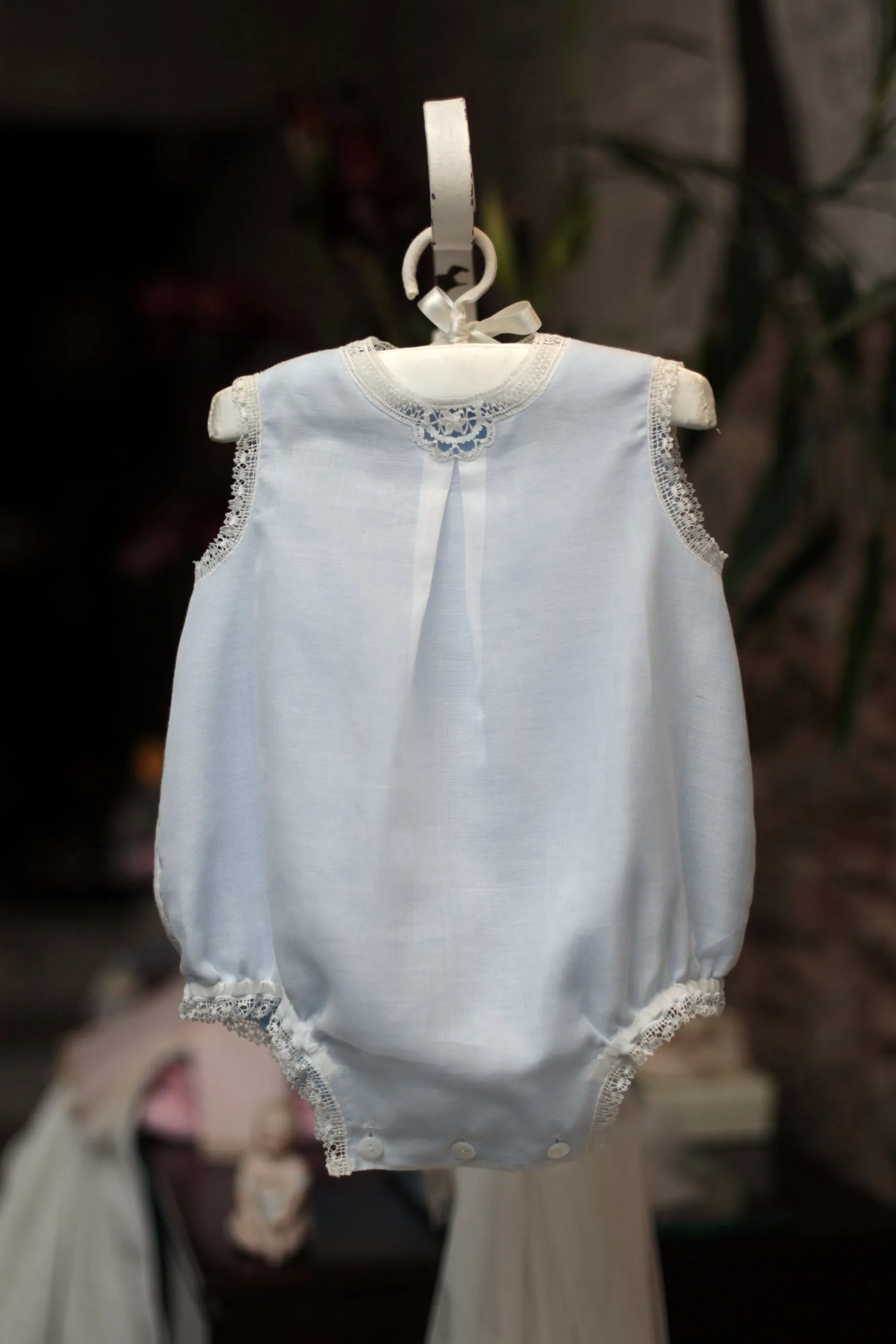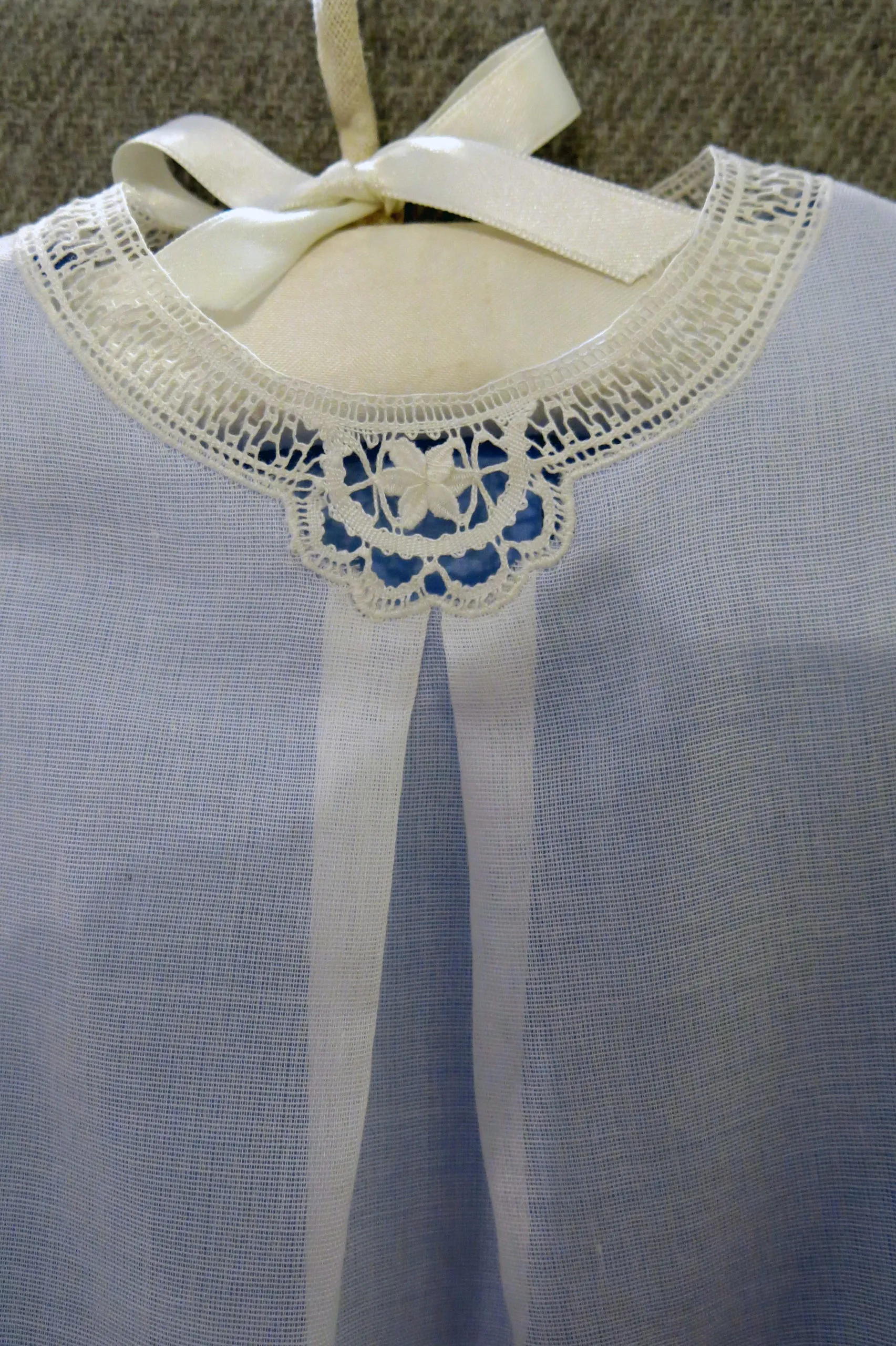 Los remates de encaje de bolillos sumados a la suavidad del aldogón dan a esta pieza una irresistible sensación de ternura.