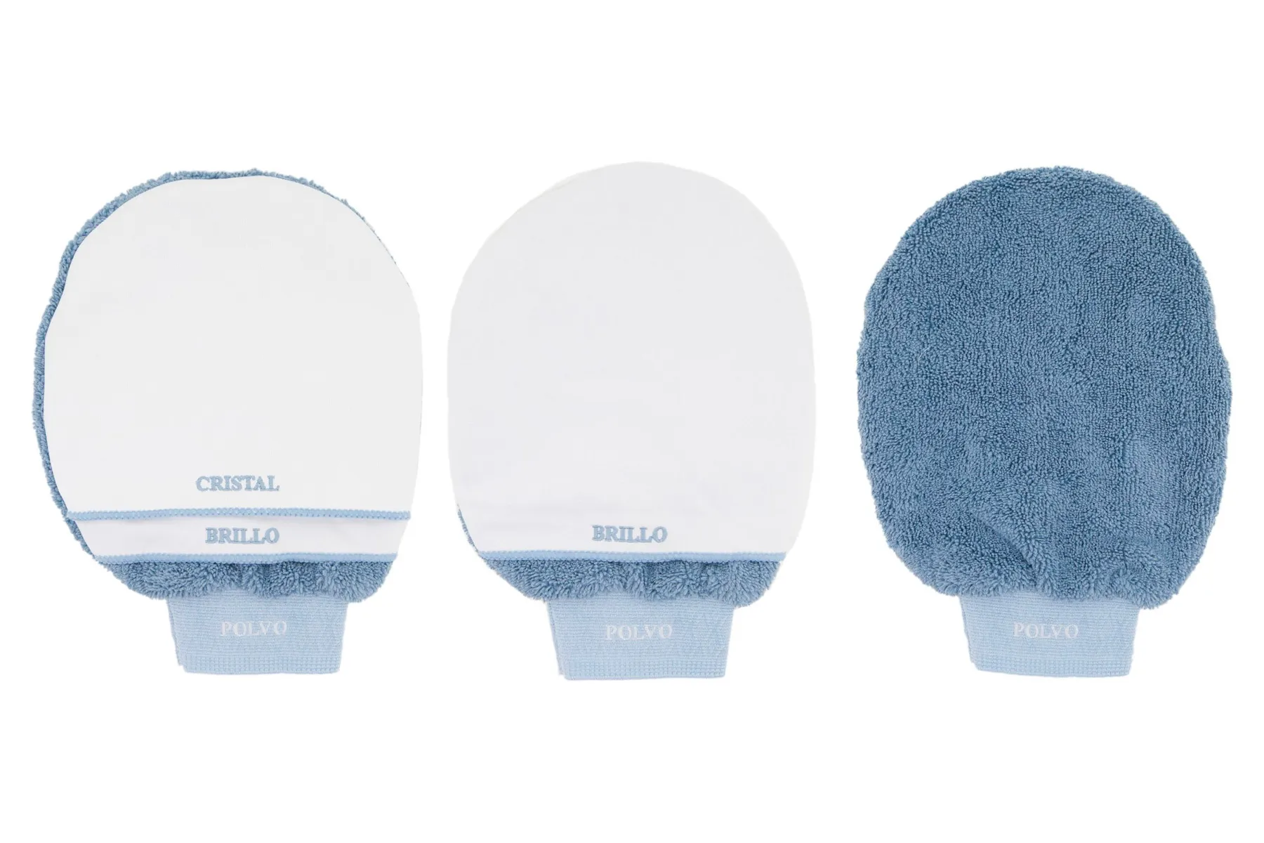 Manopla práctica con tres usos: polvo, cristal y brillo.