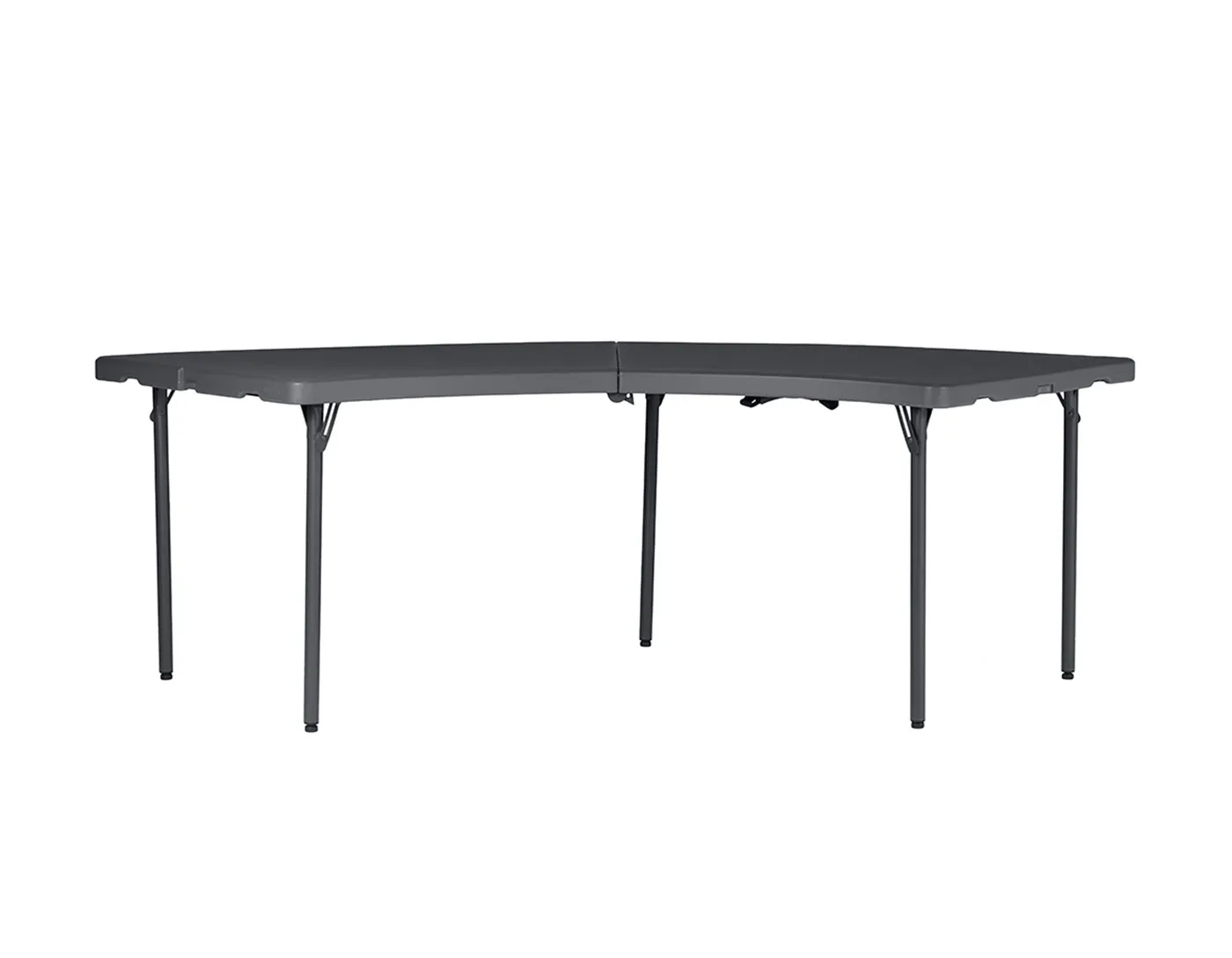 MESA MOON ., MEDIDAS., L 166,3 W 166,3 x H 74,3 cm. 19.60kg Mesa con forma de media luna y sistema de unión para crear composiciones variadas. Permite crear composiciones angulares uniéndola a mesas rectangulares “XL” o composiciones circulares uniéndolas entre sí. También se puede conseguir una gran mesa circular de hasta 16 comensales uniendo 4 mesas XLMoon alrededor de una Planet180.
