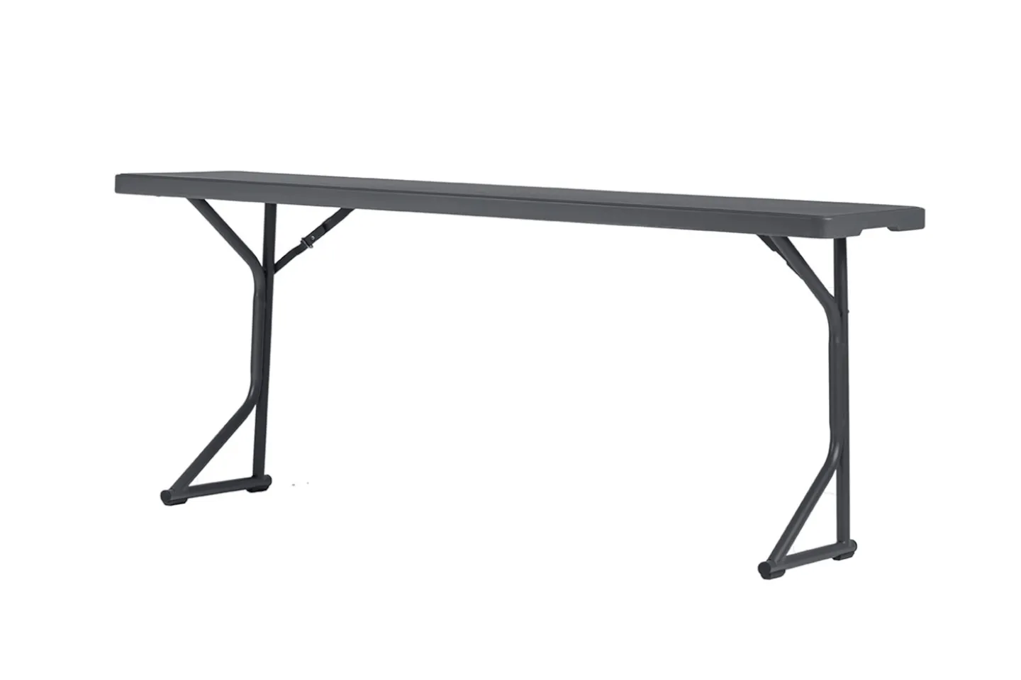 Mesa plegable de 183 x 46×75 cm especialmente indicada para congresos, convenciones, exámenes de oposiciones…Máximo confort gracias al diseño ergonómico de la estructura. 183x46x75cm 10.95Kg. Disponible con faldón Chocolate a medida.