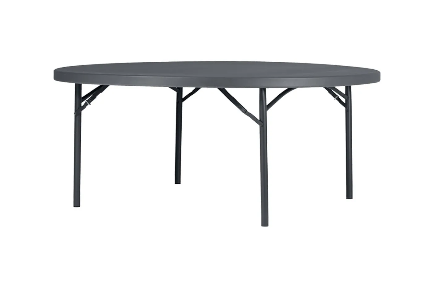 Mesa plegable redonda de Ø180X75 cm, 28.4 kg , Mesa ideal para banquetes y celebraciones. Estructura de la mesa diseñada sin travesaños para un mayor confort de los comensales. Gracias a su ligereza y a la calidad del sobre, la mesa se puede desplazar fácilmente haciéndola rodar sin resquebrajarse.