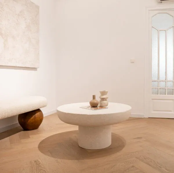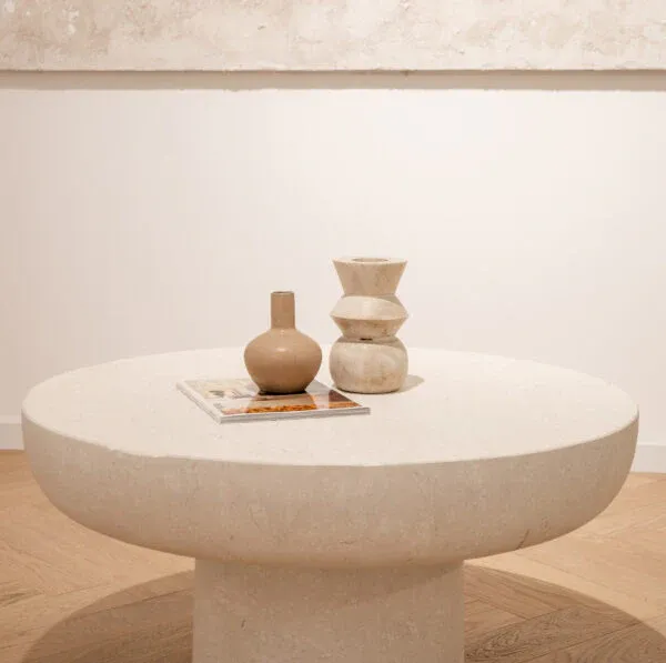Es el propio material el que da carácter y personalidad a la pieza con sus vetas e imperfecciones, y sobre todo por el hecho de que no hay dos piedras iguales, garantizando la unicidad de cada mesa.