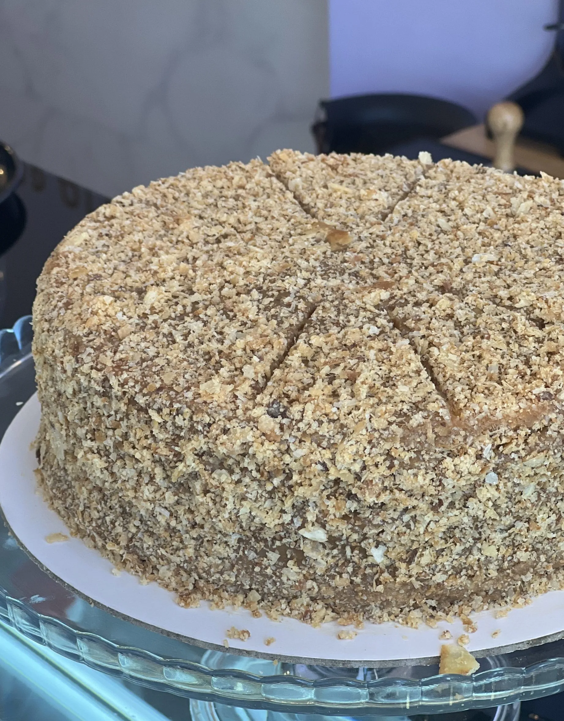- Medovik: Tamaño pequeño: 6-8 raciones / Tamaño grande: 12-14 raciones