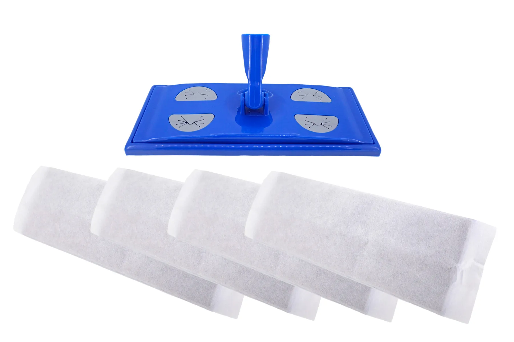 Este set permite la máxima desinfección en baldosas, parquet, mármol… Se puede utilizar por ambos lados en superficies secas. No tirar en el WC. No incluye palo (es universal)