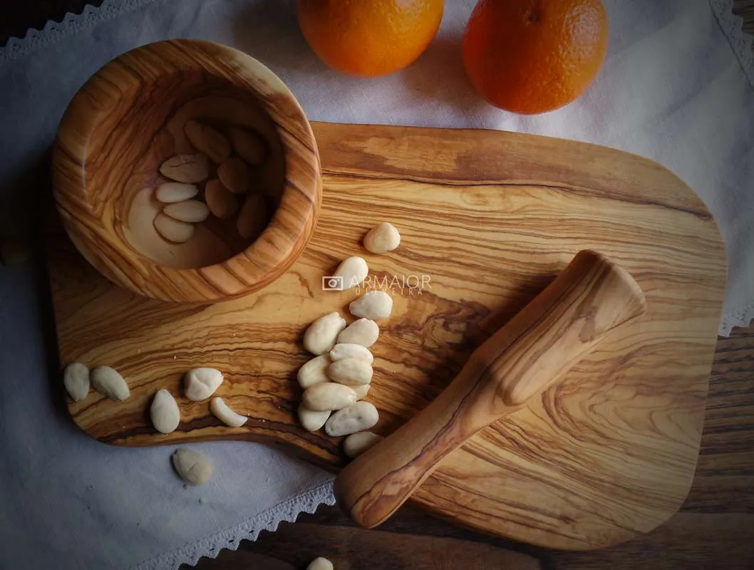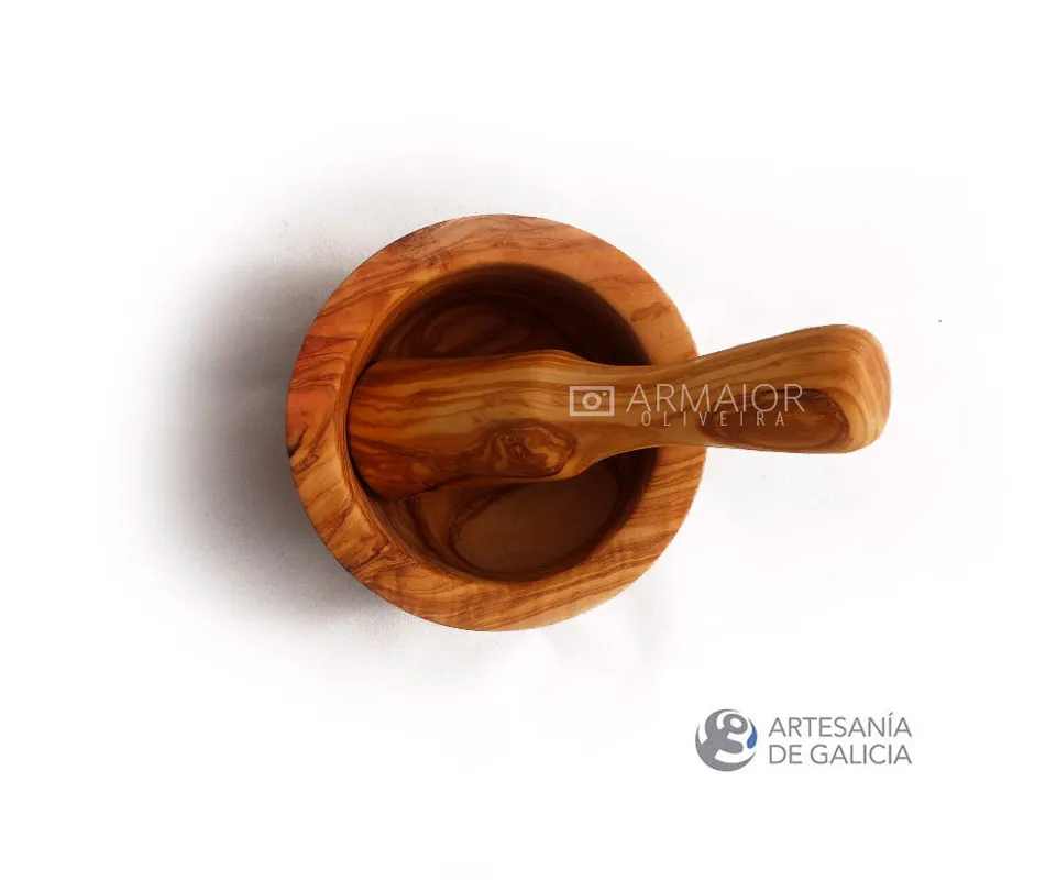 Mortero hecho a mano en madera de olivo. Mortero para machacar las especias y condimentos. Para preparar salsas como el alioli, el guacamole, la vinagreta, etc.. es un utensilio de cocina tradicional presente en nuestras cocinas desde tiempo inmemorial.