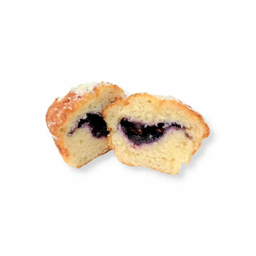 Esponjoso bizcocho artesano, cubierto y relleno de arándanos. Una delicia.
